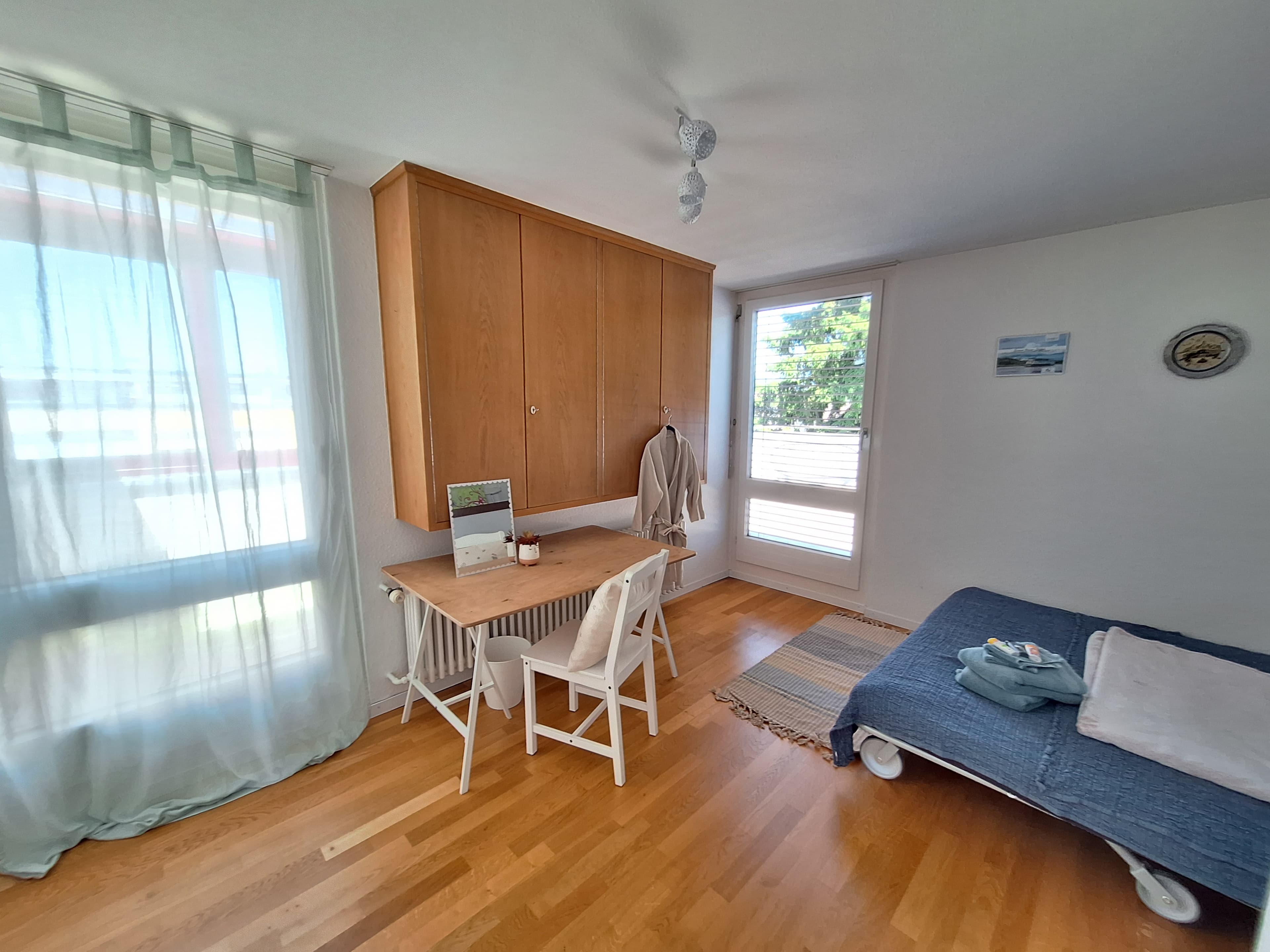 Gemütliches, möbliertes Zimmer mit eigener Dachterasse. Bad, Küche und Waschküche zur Mitbenützung.