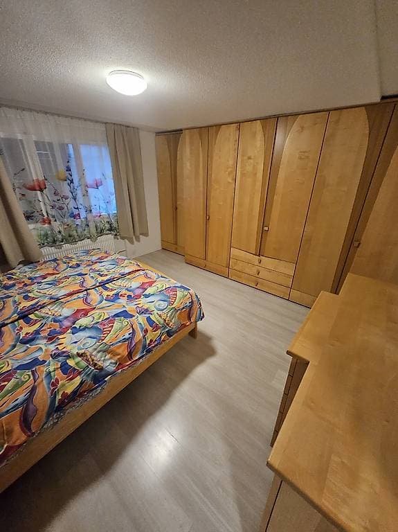 1x möbliertes WG-Zimmer mit Doppelbett für 2 Personen, die mönatliche Miete beträgt 1100,00 Chf, im Preis inbegriffen sind: Wasser, Heizung und Strom.