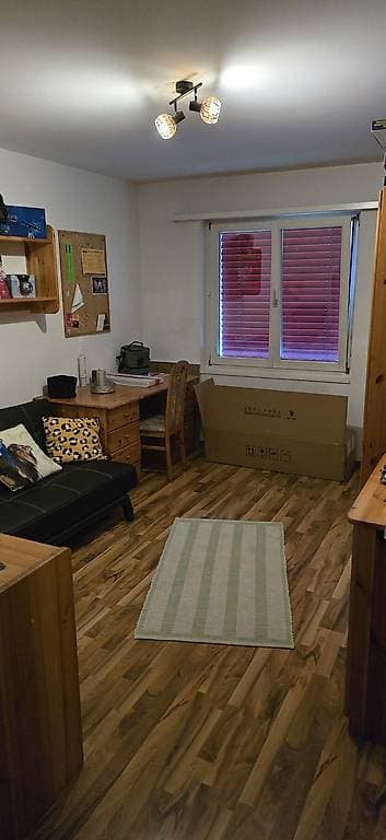 Beide Zimmer haben eine Grösse von ca. 12 m2. Das eine ist möbliert mit Schrank, Schreibtisch, Kommode und Schlafcouch, das andere wäre zur freien Gestaltung. Ein kleines separates Bad mit WC und Dusche gehört ebenso dazu. Küche und Wohnbereich zur Mitbenützung.