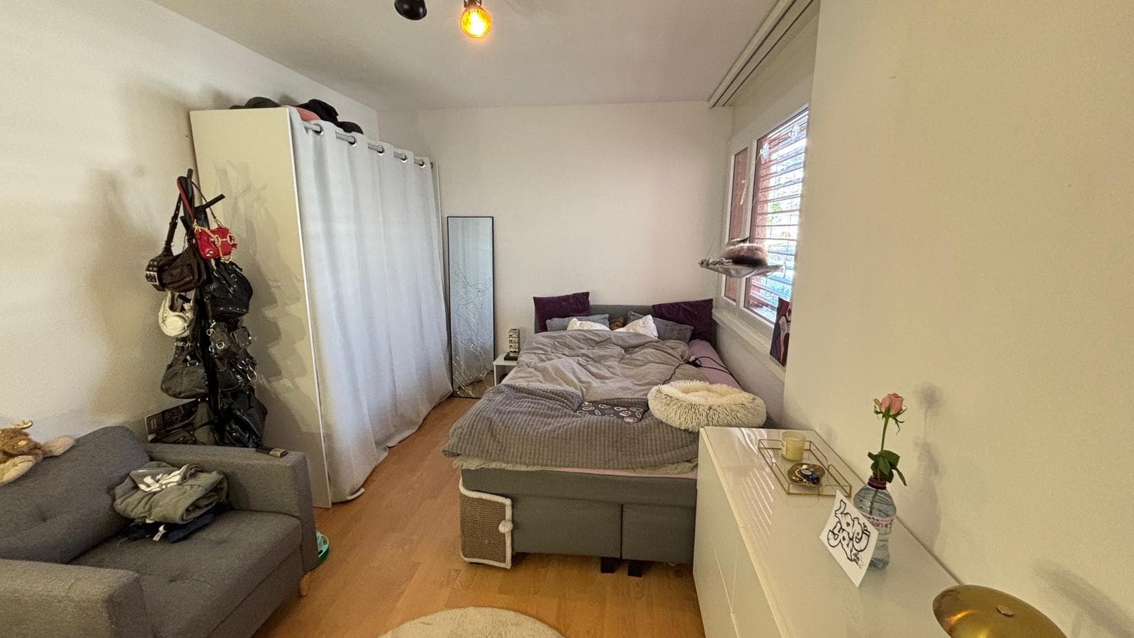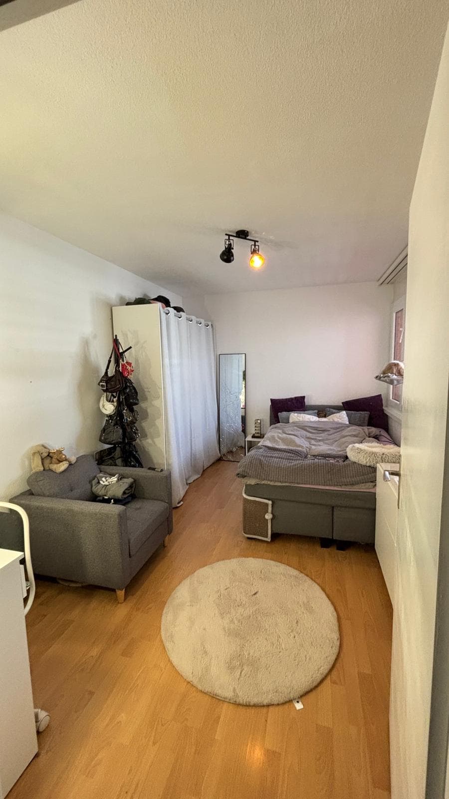 Dein Zimmer hat ein Fenster, das auf eine ruhige Strasse in der Zone 30 schaut. Die Gegend ist ebenfalls sehr ruhig, also perfekt für Studentinnen geeignet.