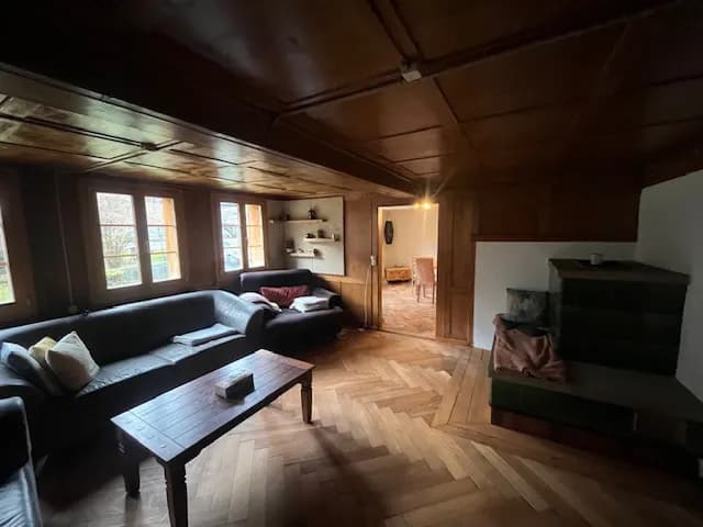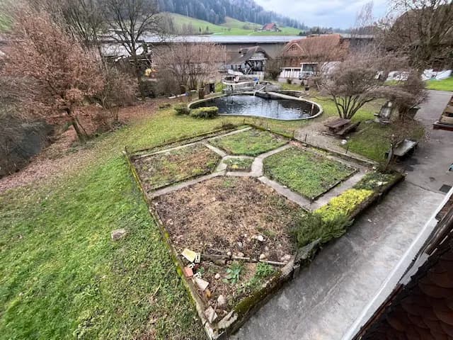 Zum Haus gehört ein grosszügiger Garten mit Sitzmöglichkeiten, zwei Feuer- und Grillstellen sowie ein eigener Weiher, in dem geschwommen werden kann. Geplant sind zusätzlich ein Hot-Pot direkt am Weiher. Wenn du Freude an Gartenarbeit hast und Lust, diesen Aussenraum aktiv mitzugestalten, ist das ein klarer Pluspunkt.