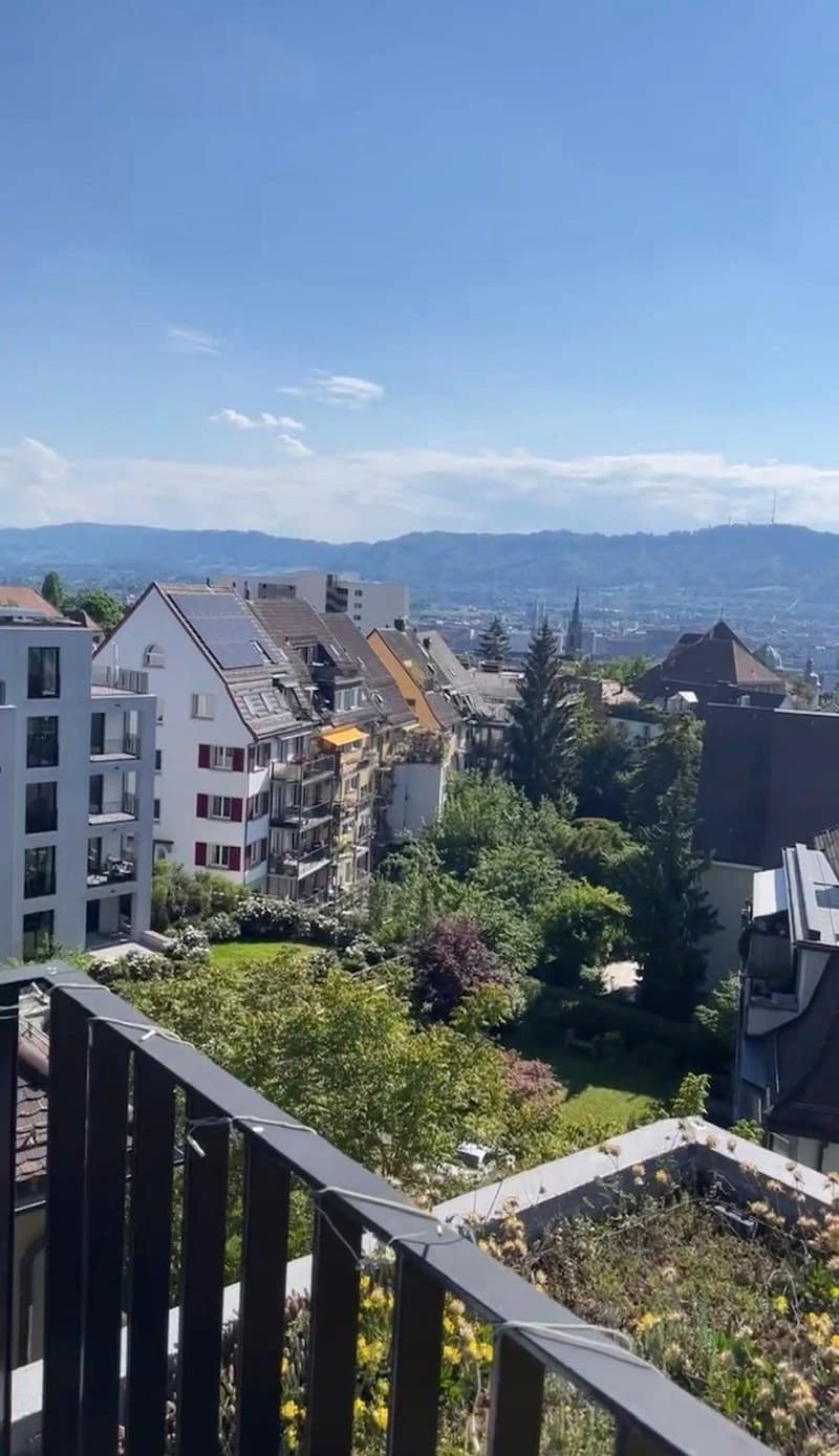 Grosser Balkon und Dachterrasse mit Blick über Zürich