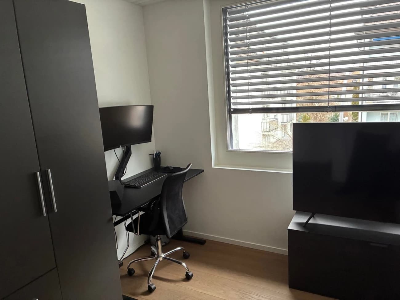 Das Zimmer ( 18,5 ) ist gemütlich und gut ausgestattet und wird möbliert vermietet . Es verfügt über ein 1.6 m Bett mit neuer Matratze, eine Workstation zum Arbeiten sowie einen eigenen Fernseher. Dank dimmbarem Licht lässt sich die Stimmung perfekt anpassen – egal ob zum Arbeiten oder Entspannen.