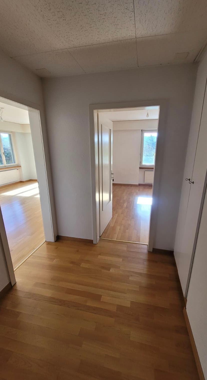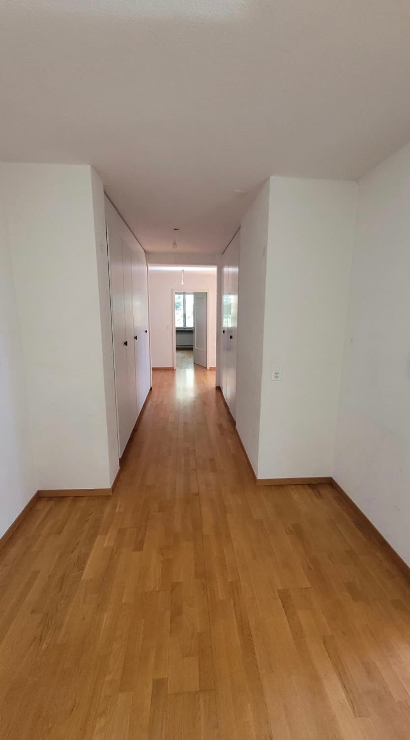 Dein Zimmer ist 11.4m2 in einer sehr grossen Wohnung (160m2, 5.5 Zimmer) mit grossem Wohnzimmer. Es gibt viele Möglichkeiten Dinge zu verstauen, in Einbauschränken und Abstellräumen.