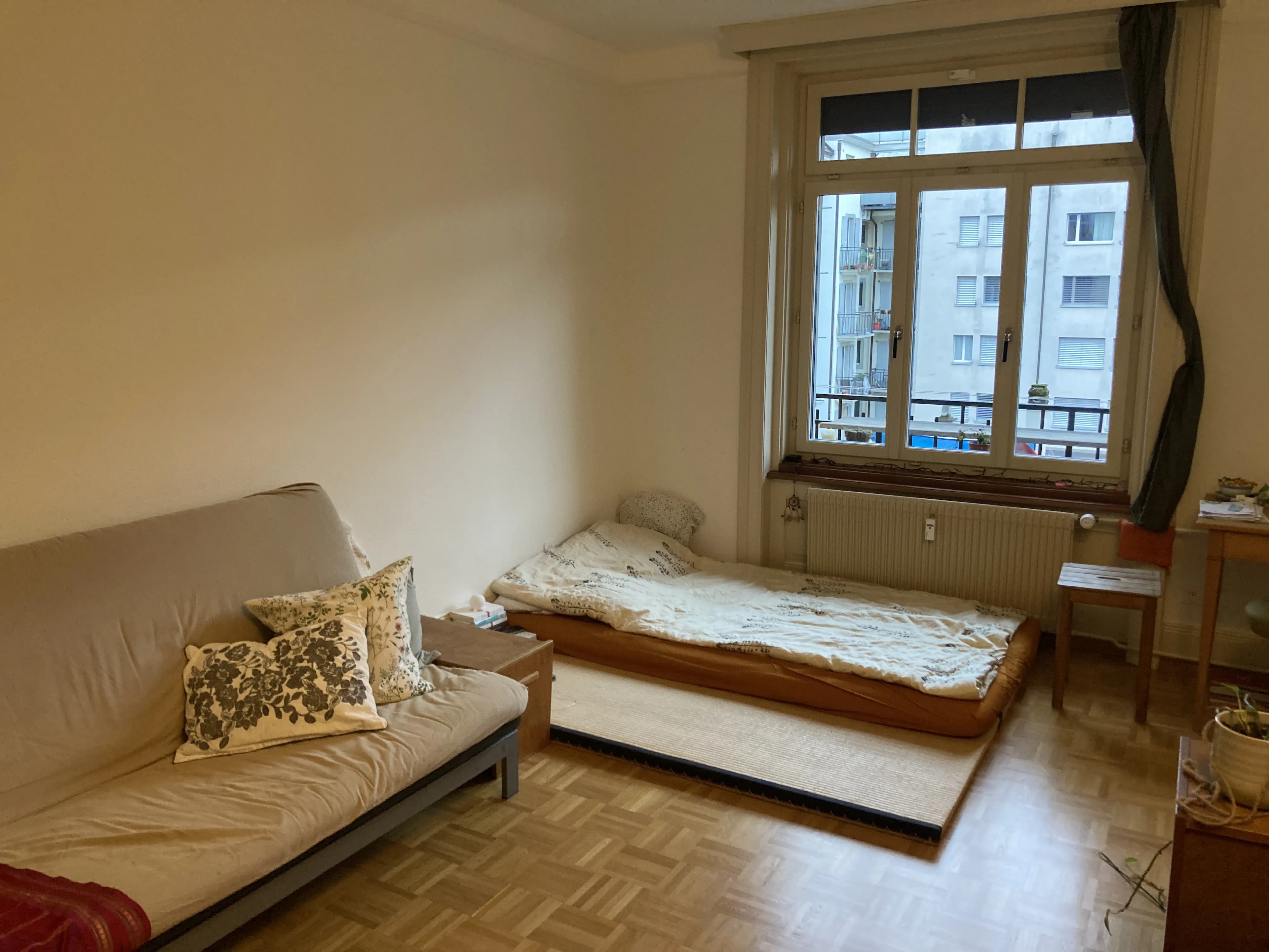 Da ich (Janna) einige Monate Reisen gehe, möchte ich mein Zimmer untervermieten. Voraussichtlich würde ich es ca. ein halbes Jahr untervermieten, da ich noch nicht genau weiss wie lange ich weg bin. Das Einzugsdatum und den Zeitraum können wir gerne noch gemeinsam besprechen.