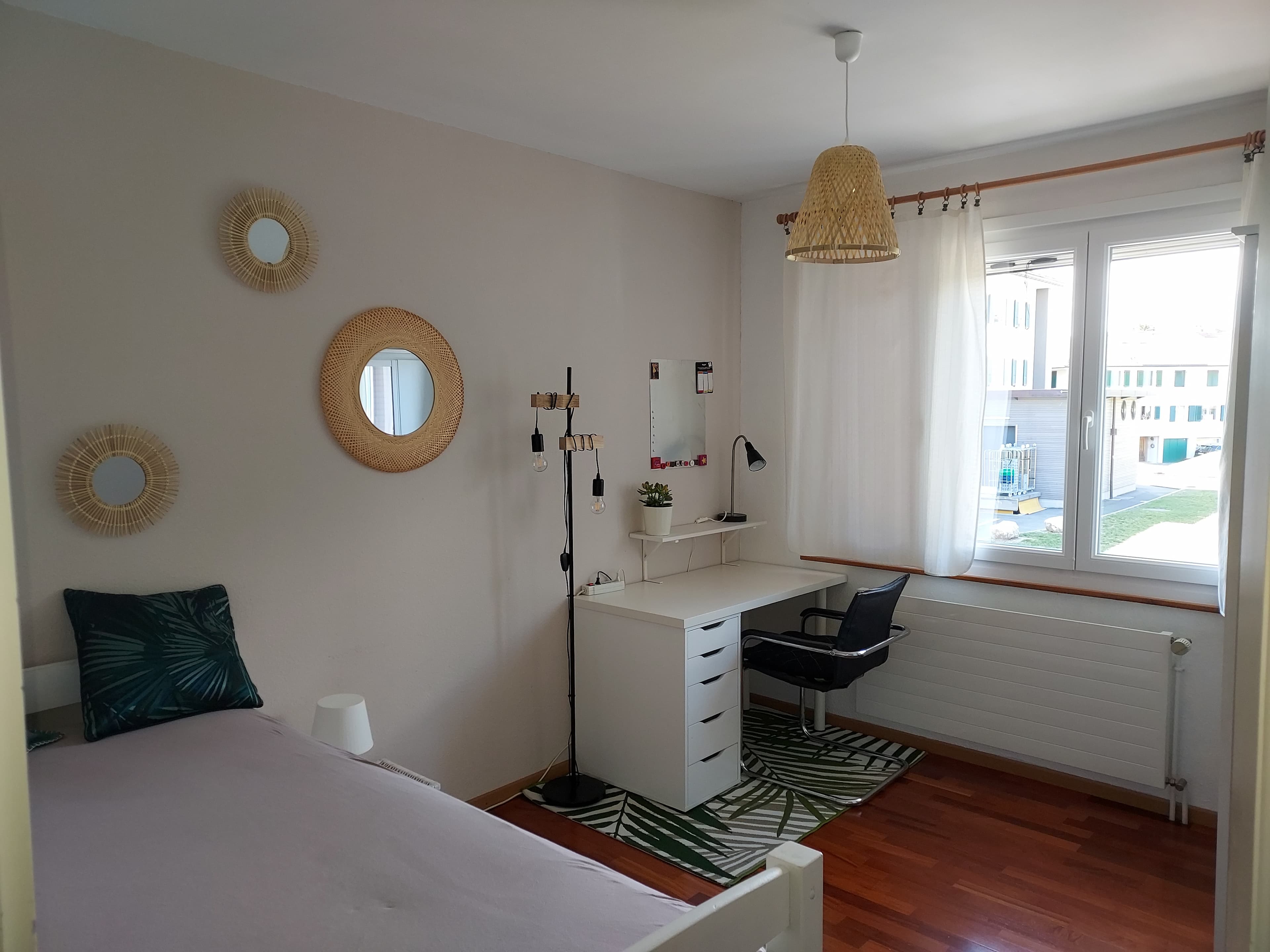 Dès NovemberDisponible à partir de 22.11.20253 semaines en ligneonline.since 3 semainesLa chambre disponible est de 13 m² et son loyer est de 1 280 CHF par mois charges comprises.L'appartement dispose d'un balcon ou d'une terrasseLa chambre est entièrement meublée, il est éventuellement possible d'apporter ses propres meublesMachine à laver dans l'appartementLa chambre dispose de sa propre salle de bain, que tu ne dois partager avec personneWifi partagéSexe indifférent