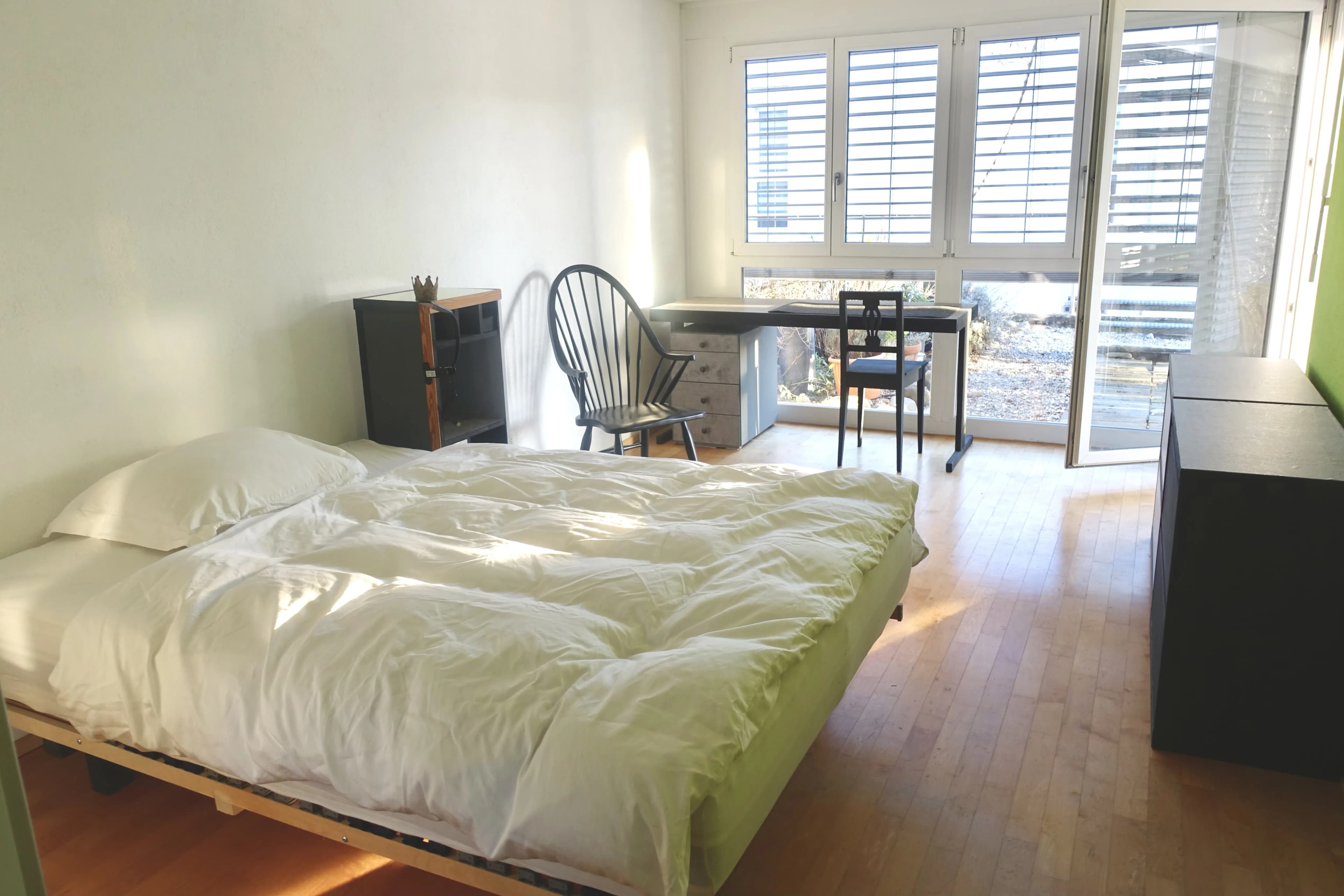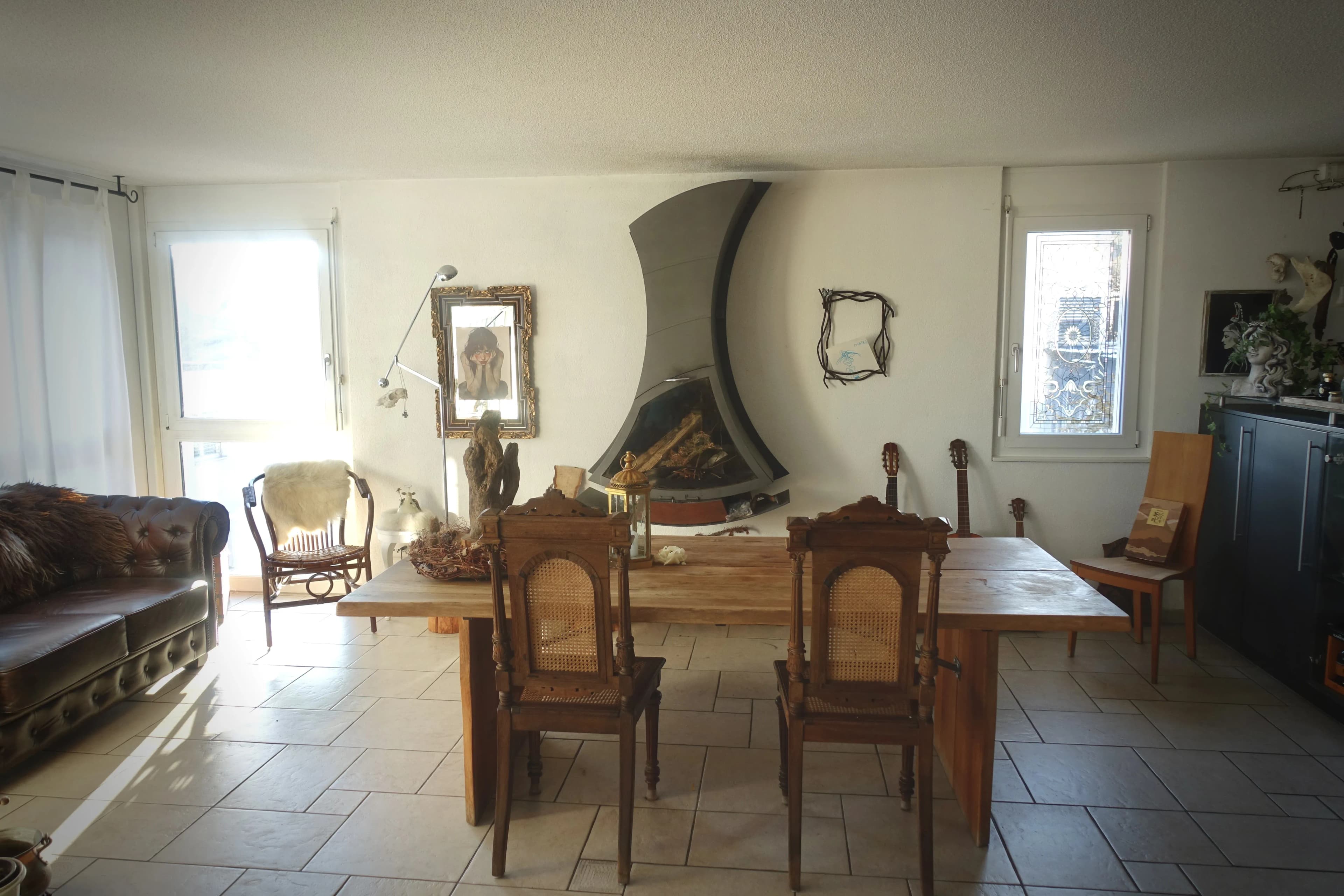 Roommates wanted, preferably cheerful and nature-loving, age and gender don't matter, as long as we get along well. The flat is 190 m² and has two floors. It is very bright and located in a multi-family house with underfloor heating, in a green area and close to the Aare river.
