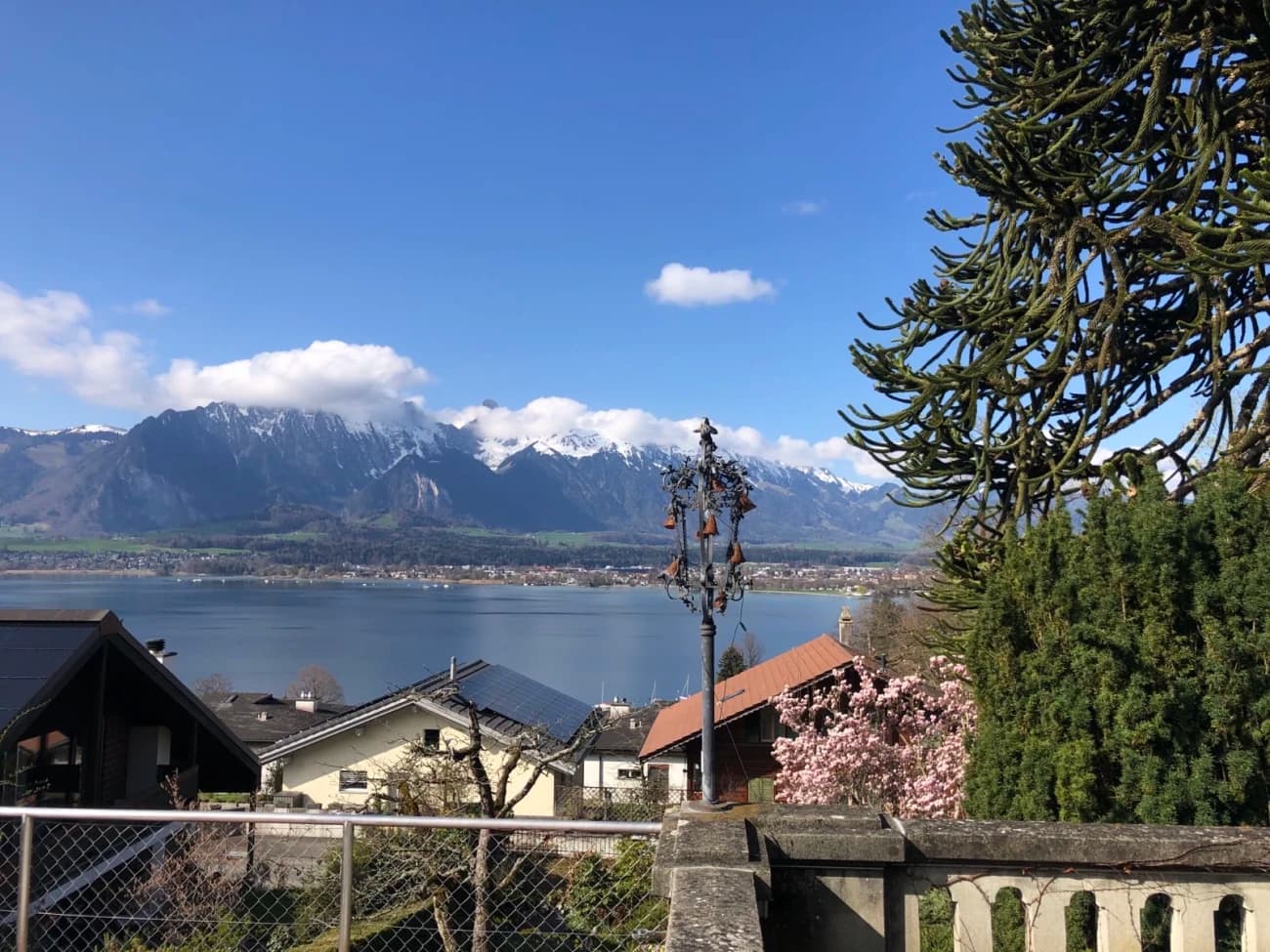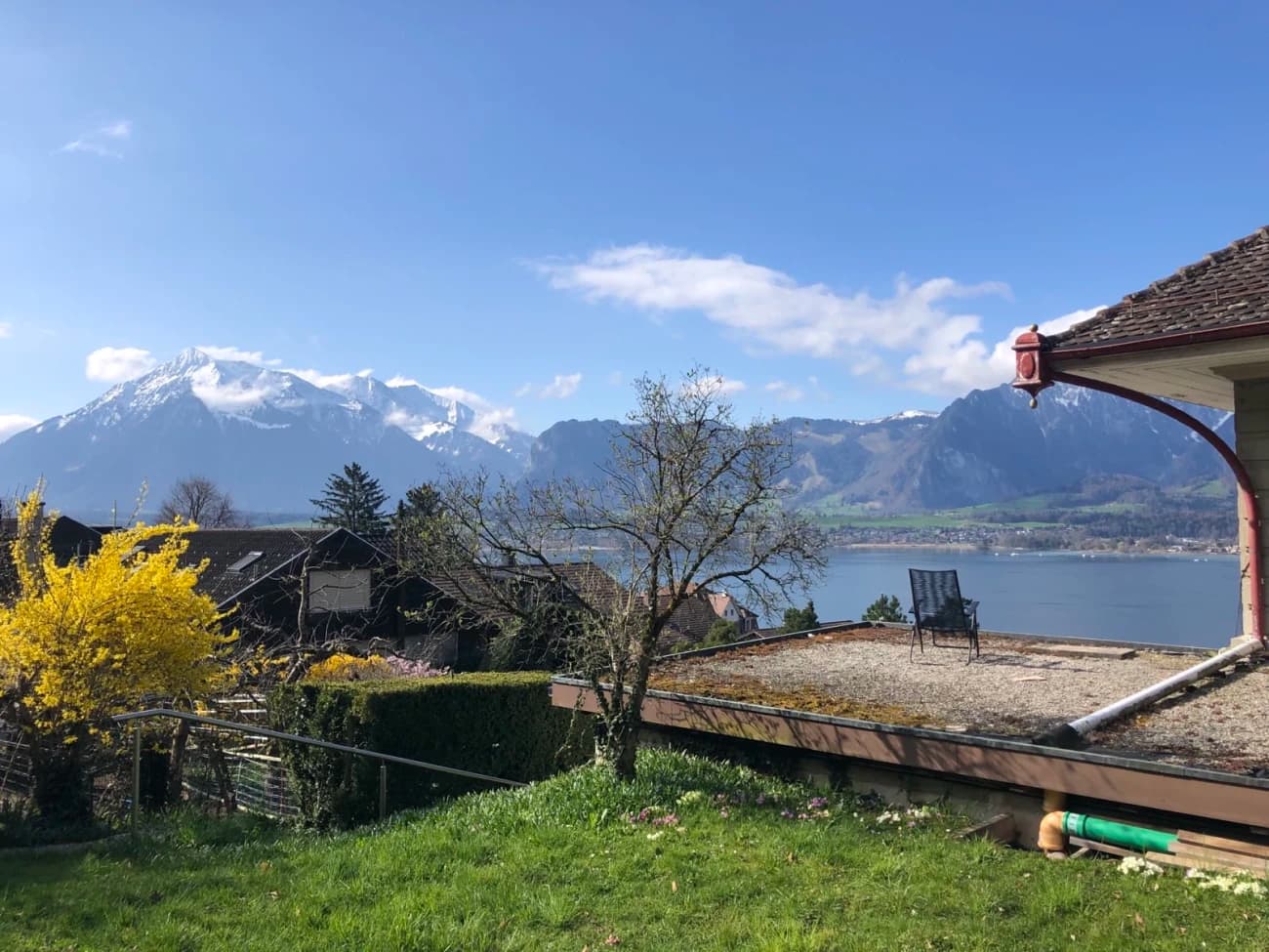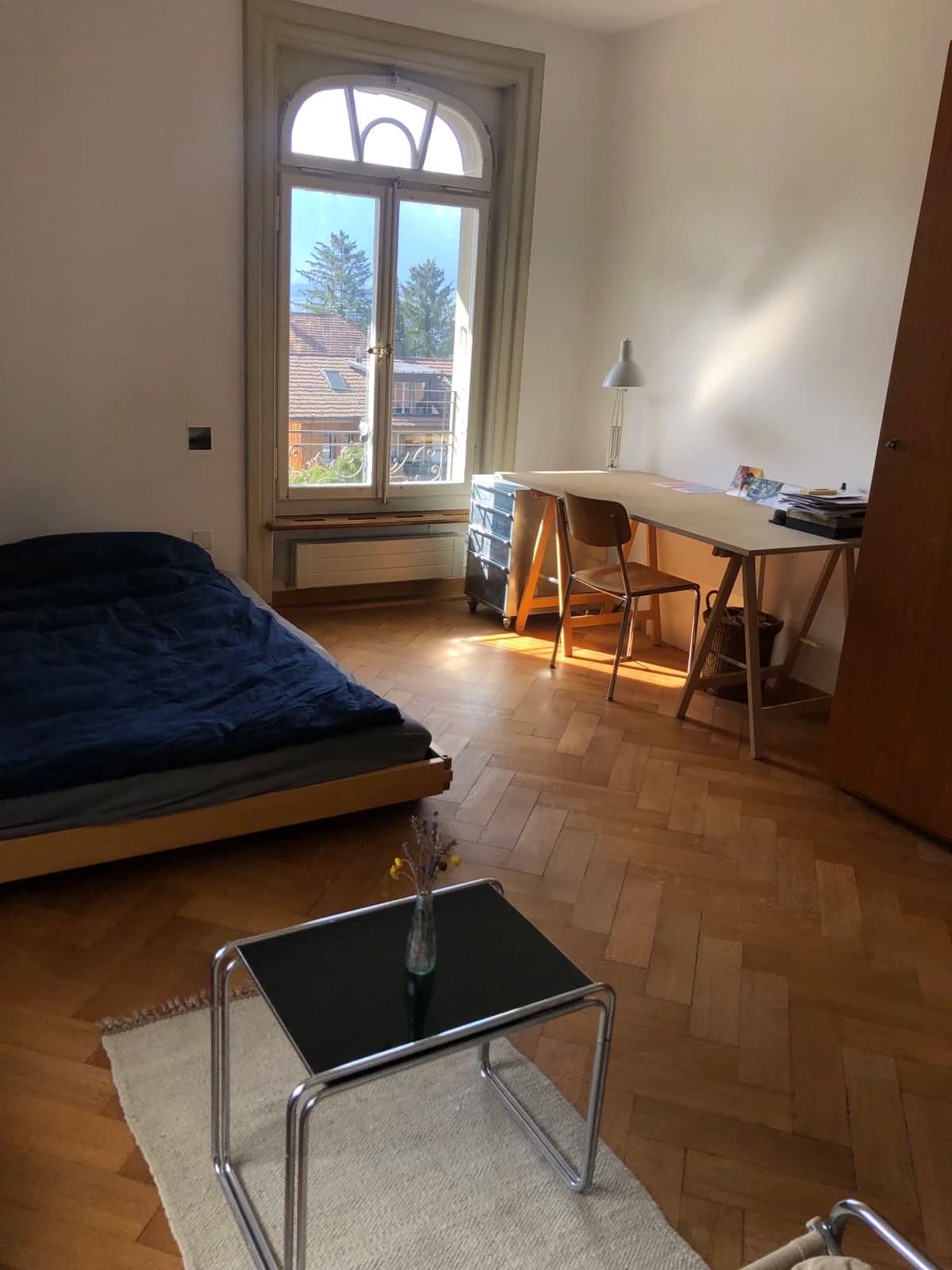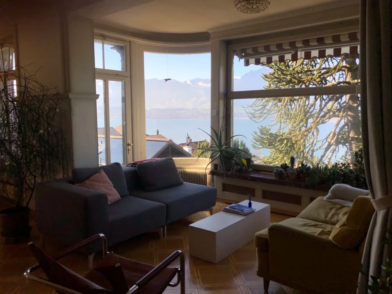 - Ein 20m² grosses Zimmer mit Sicht auf den See und die Berge für 820 CHF/Monat in einem kinderfreien Stock.