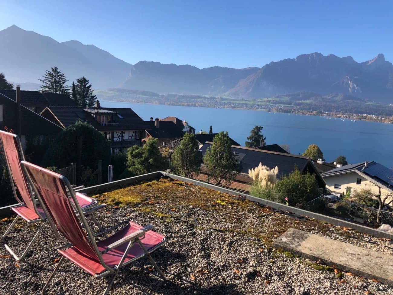 Wir, eine Gemeinschaft von sechs Personen, suchen ab dem 1. Mai 2026 (oder später) eine:n Mitbewohner:in, die oder der Teil unserer Gemeinschaft werden möchte. In unserem Zuhause in Hilterfingen (10 Minuten mit dem Velo vom Bahnhof Thun entfernt) wird ein schönes, helles Zimmer frei in unserem Haus mit Garten und Seeblick.