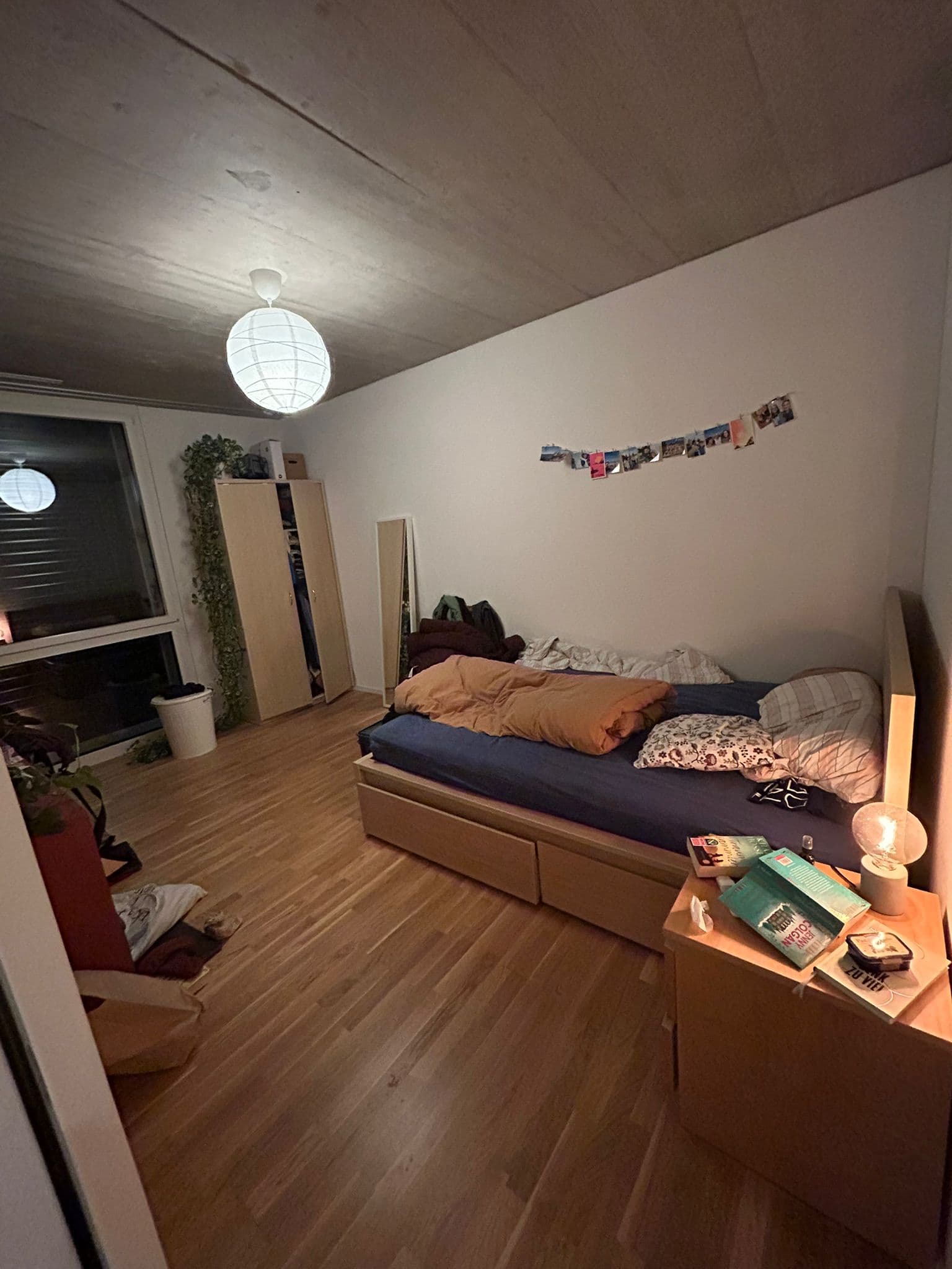 Die Wohnung verfügt über einen geräumigen Balkon, zwei Badezimmer, einen eigenen Waschturm, eine grosse Küche und ein grosszügiges Wohnzimmer (das Herzstück unserer Wohnung ;-)). Das Zimmer ist sehr hell, unmöbliert und wäre unbefristet verfügbar. Die Wohnung liegt nahe gelegen an der Letzibadi, dem Lochergut, dem Bahnhof Hardbrücke und dem Stadion Letzigrund.