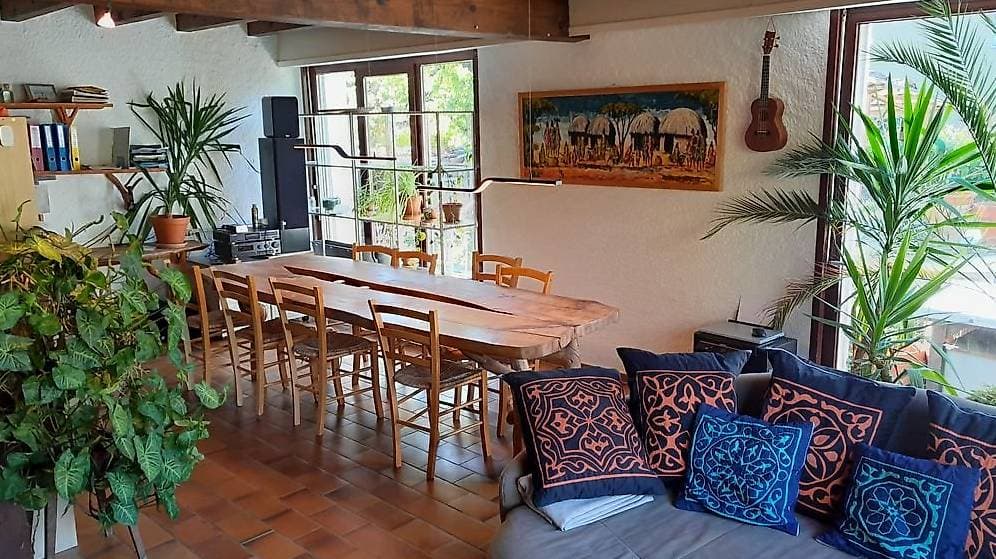 Partage des espaces communs, cuisine, séjour et Jardin. Habitude de la colocation depuis toujours.