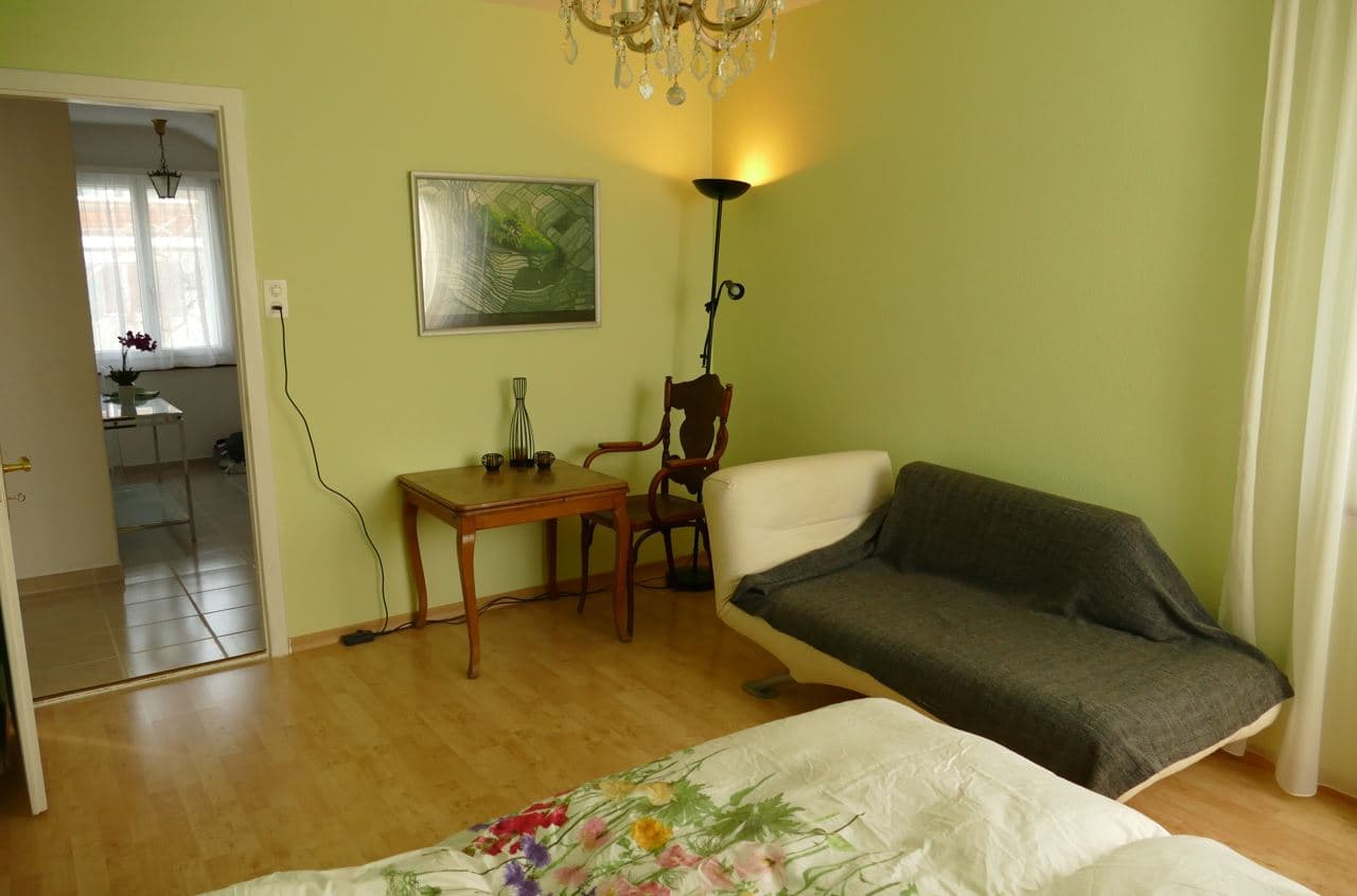 Das Zimmer befindet sich in einer Klein-Villa mit 1200m3 Garten und Zelt-Pavillon, den Du gern mit Freunden nutzen darfst. Super zentral und nur 150m ab Bus 61/62.