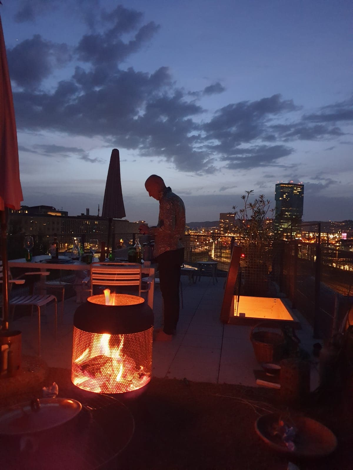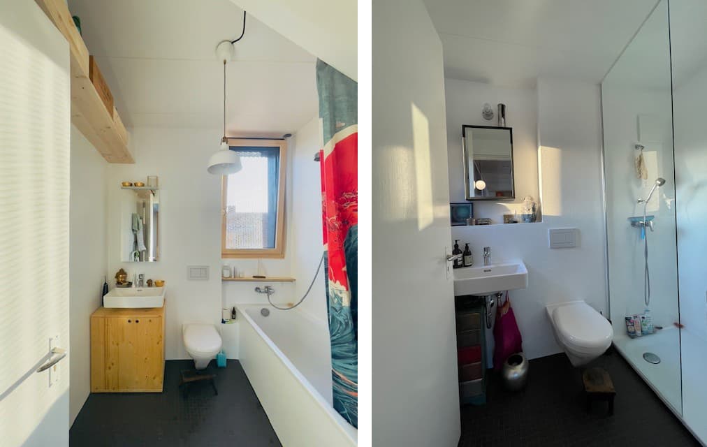 Die 40m2 gemeinsam benutzten und fertig möblierten Räume beinhalten 2 Bäder und ein Wohn/Essbereich mit Küche. Die sage und schreibe 5 Balkone! und die 23m2 grosse Dachterrasse mit der wunderbaren Weitsicht, werden gemeinsam benutzt.