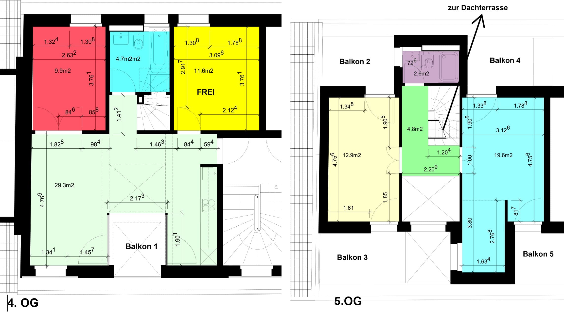 Stockwerk: 4+5 OG Maisonette Dachwohnung