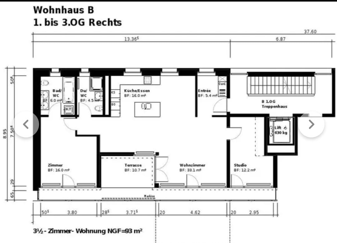 Die 3.5 Zimmer Wohnung ist mit 93 m2 grosszügig und sehr hell, verfügt über eine offene Küche und Wohnbereich und einen grossen überdachten Balkon. Nebst zwei Zimmern hat die Wohnung auch zwei Bäder.