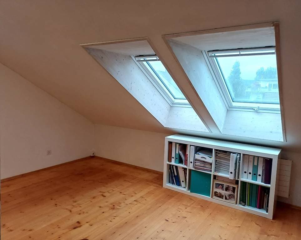 In Reiheneinfamilienhaus in Windisch Unterdorf, Ländestrasse vermieten wir ein WG Zimmer im DG, Zimmer ca. 20 qm Grundfläche, EG wird gemeinsam genutzt, Terrasse, Reiheneckhaus an ruhiger Lage, gemeinsames Bad mit Dusche im UG, Nutzung mit anderer WG Partnerin, es leben 3 - 4 Personen im Haus, gemischtes Alter (nicht nur Studenten, auch ältere Personen 60+, aber junggeblieben), wir suchen eine ruhige, vorzugsweise weibliche Person, gerne Studentin. Zimmer mit Regalen (also teilweise möbliert). Für weitere Fragen gerne Kontakt im ersten Schritt per email, 730 CHF pro Monat, Nebenkosten 90 CHF pro Monat.