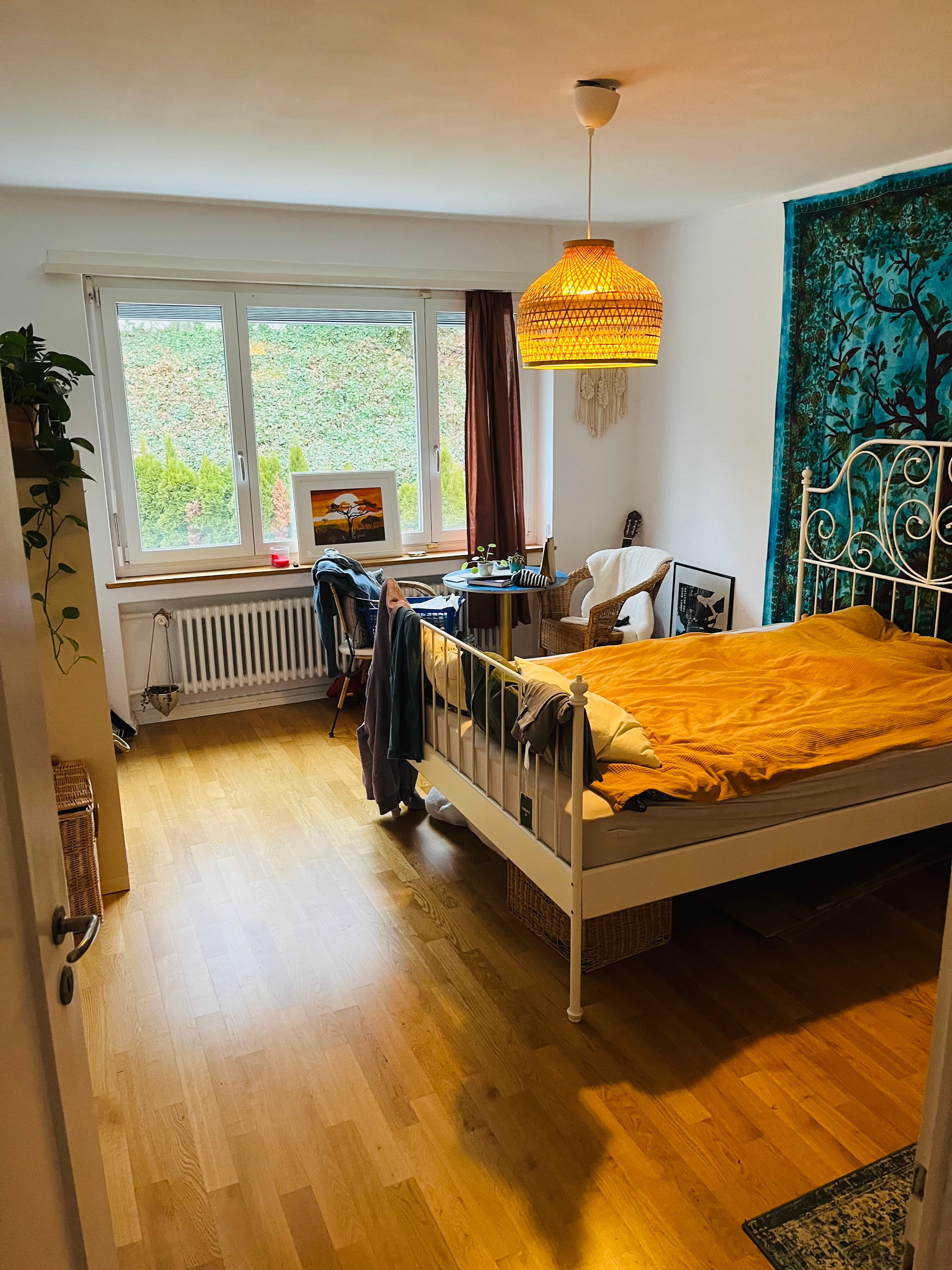In meiner 4-Zimmer-Wohnung wird ein ca. 17 m² großes, unmöbliertes Zimmer (inklusive grossem Einbauschrank) frei. 957.– CHF inkl. NK & Mr. Green Abo, unbefristet, Einzug ab 1.2.26 oder nach