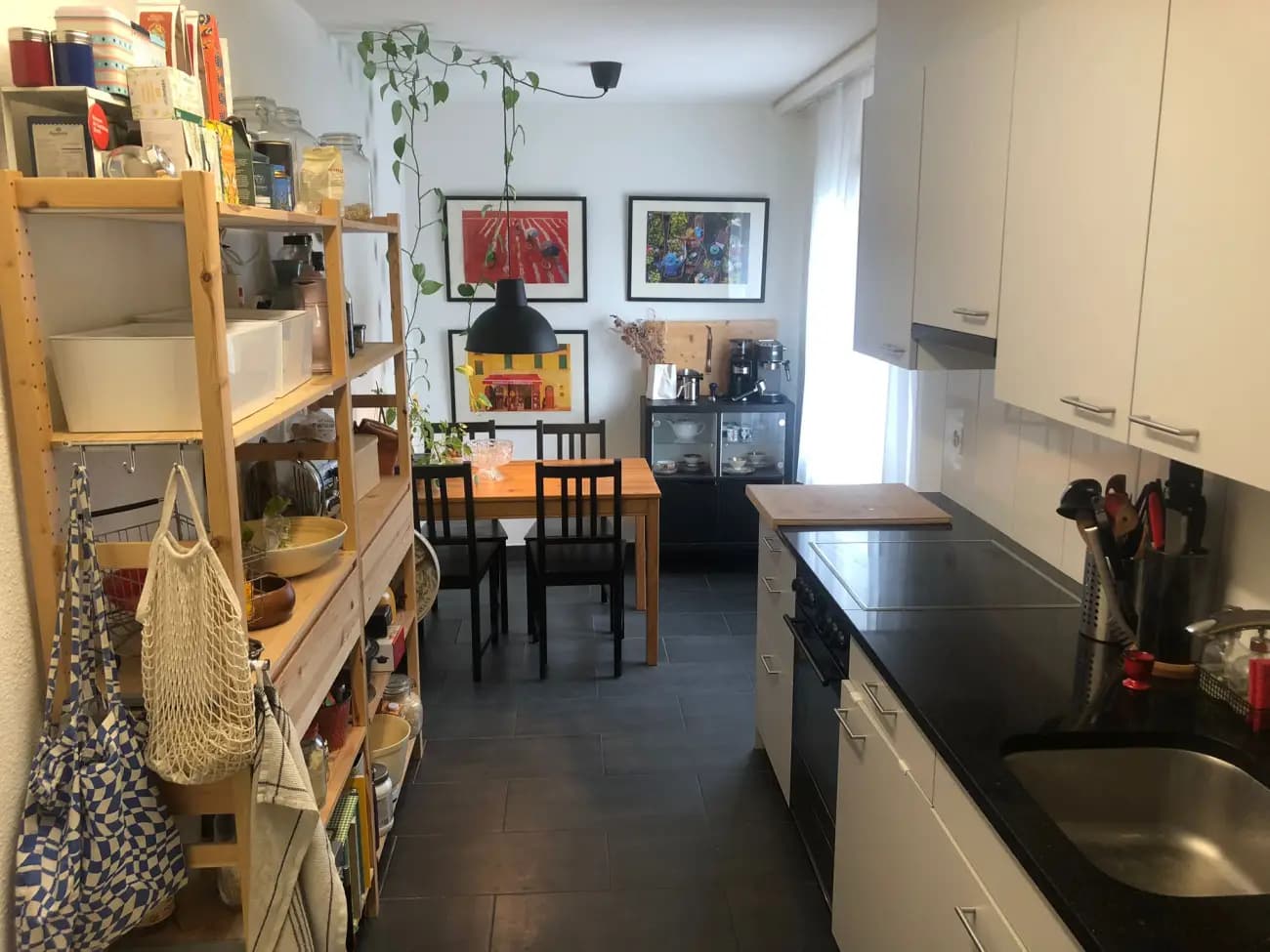 We’ve got a room (13 m²) opening up in our flatshare in Zurich Höngg, right by the Werdinsel. It’s a bright and spacious 4.5-room apartment with a modern kitchen, a big living room, a cozy balcony, and plenty of space to hang out. The flat is on the 2nd floor, and the building also has a shared laundry room, bike storage, and a private basement storage unit.