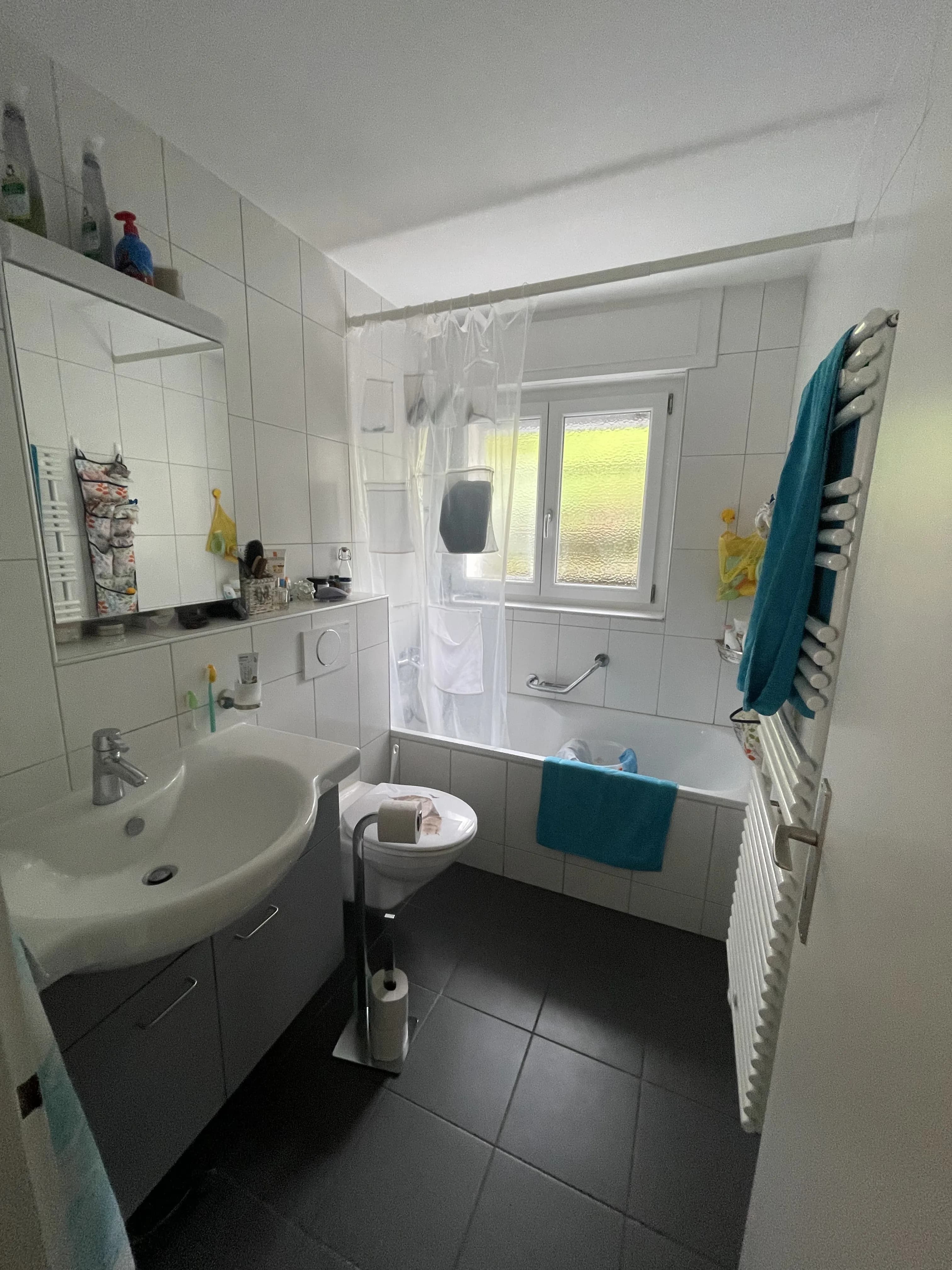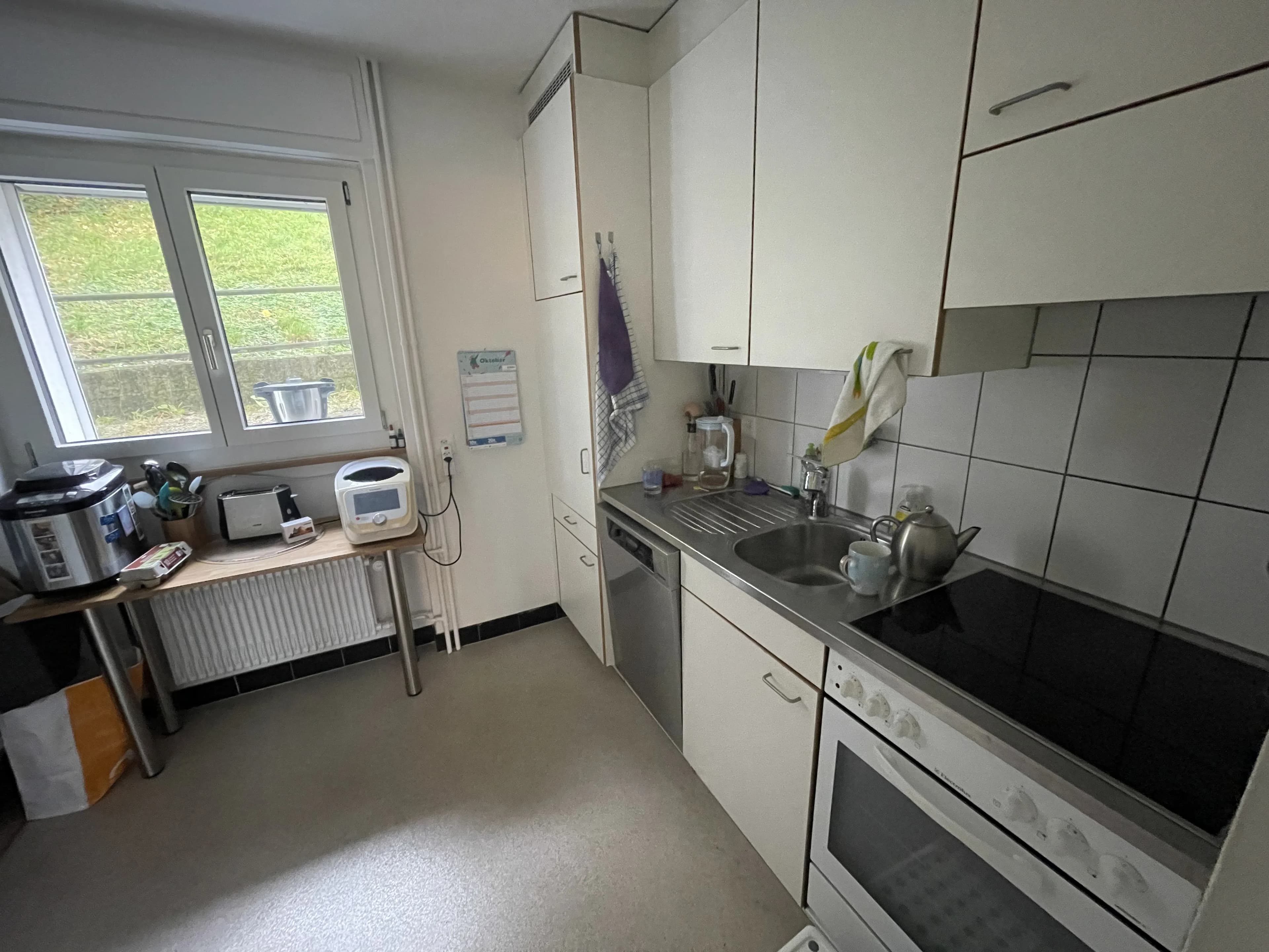 Ich biete ein Zimmer in einer hellen, ruhigen Wohnung, mit grossem Balkon. Mitbenutzung von Wohn- und Essbereich, Küche und Toilette. Ländlich und gut erschlossen: 1 Minute zur Bushaltestelle, ca. 10 Minuten zum Zug. Natur in der Nähe (Fluss, Wald), ideal für Spaziergänge und Erholung. Nichtraucher-Wohnung