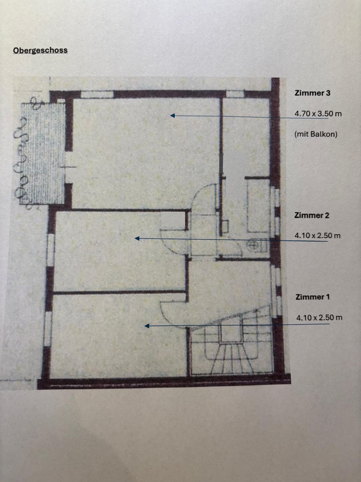 - Zimmer 3 ca. 16 m2 (OG, mit Balkon) MZ 950.- + 100.- NK