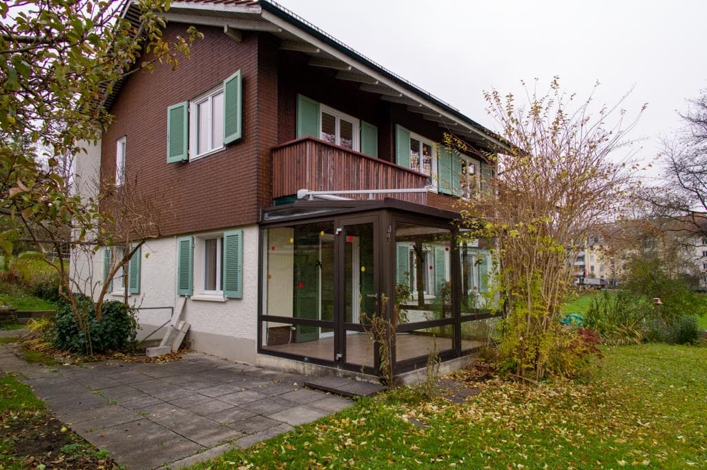 Die Liegenschaft ist von einem grossen Garten umgeben und liegt in einem ruhigen Quartier.