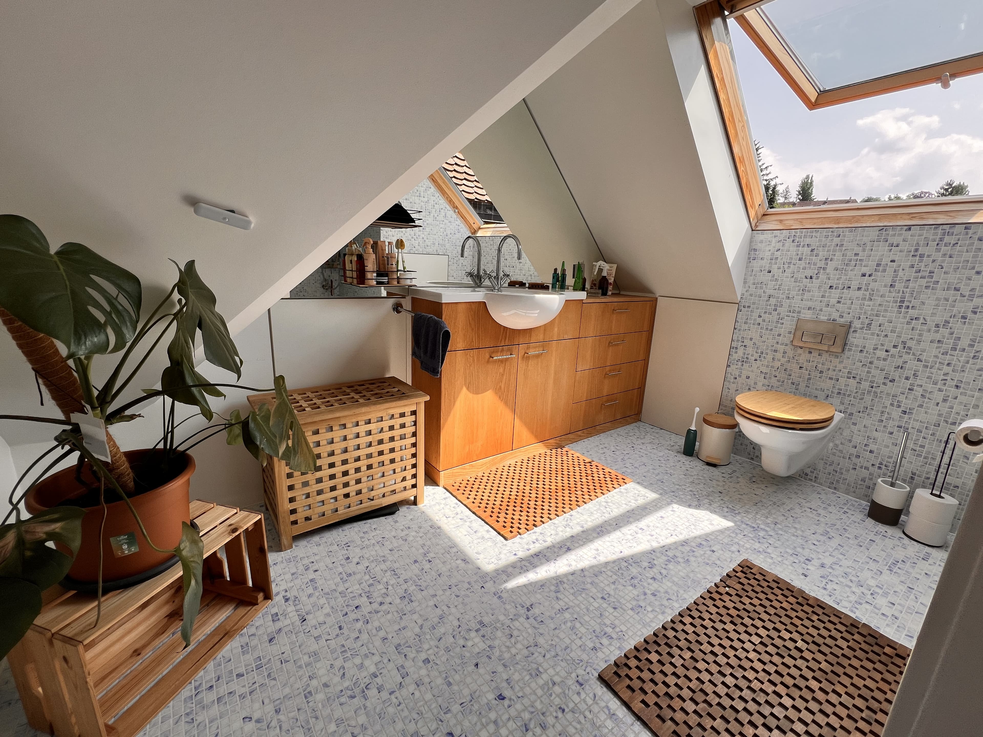 Wir leben in einem grosszügigen Haus mit 250 m² Wohnfläche, das viel Raum zum Ankommen, Entfalten und Kreativsein bietet. Es gibt stille Rückzugsorte, wenn man Zeit für sich braucht, und offene, gemütliche Räume, in denen wir zusammen kochen, reden, lachen oder einfach entspannt den Abend teilen.