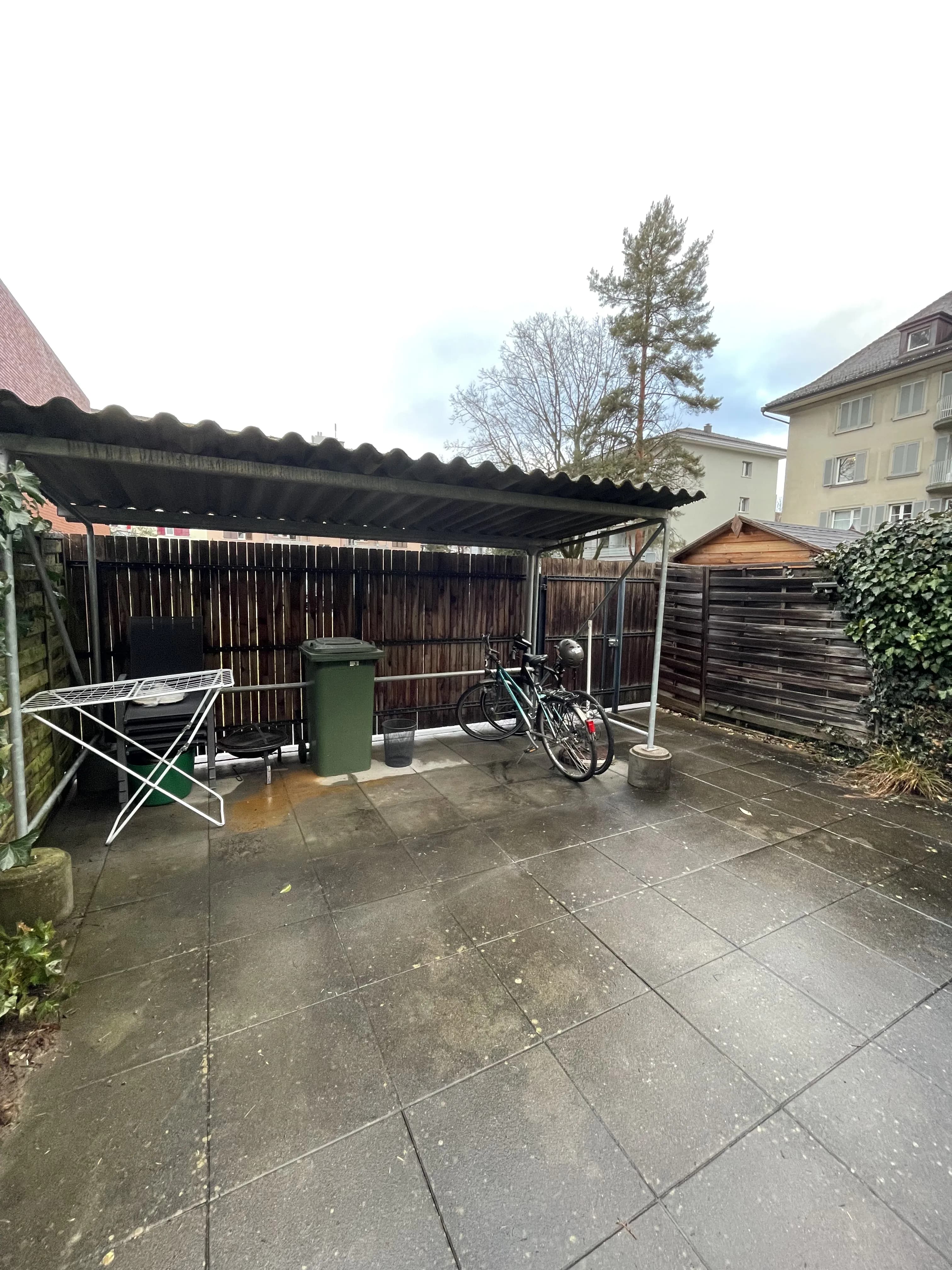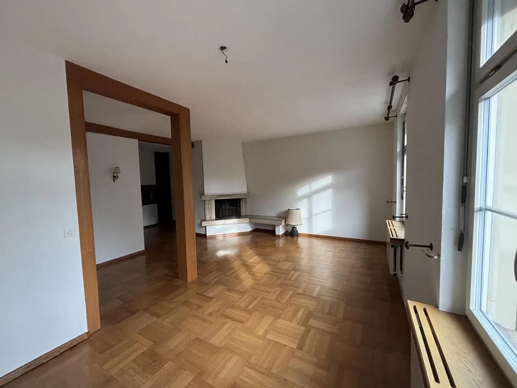 Unsere Wohnung besteht aus einem Wohnzimmer mit Cheminée, einer Küche, zwei Badezimmer mit Dusche und Waschmaschine, drei Schlafzimmer und einem gemeinsamen Büro/Hobby-Zimmer. Ausserdem gehört eine Terrasse mit Platz zum Verweilen und einem Velo-Unterstand zu unserer Wohnung, die wir mit einer anderen Nachbar-Partei teilen. Es gibt Parkplätze, die man dazumieten könnte und eine Bushaltestelle zwei Minuten von der Wohnung entfernt. Den Bahnhof erreicht man zu Fuss in 5 Minuten!