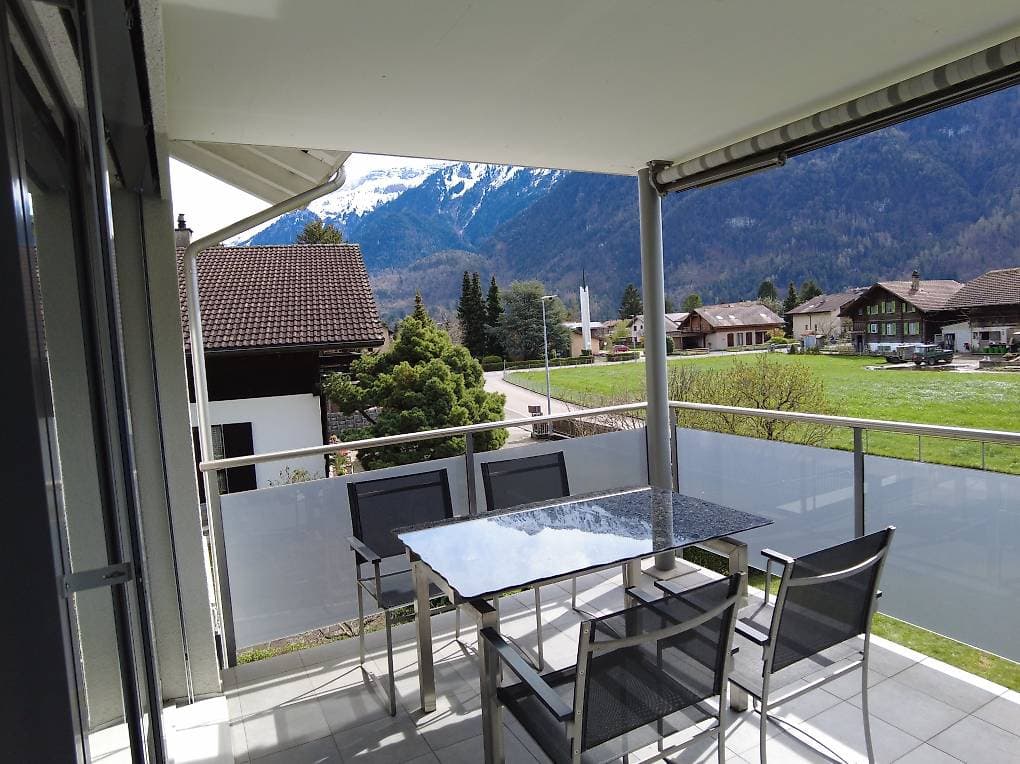 Schönes, moderndes und helles WG-Zimmer (grosse Fenster, viel Licht!) in einer neuwertigen 4.5-Zi. Wohnung in 3800 Matten bei Interlaken. Sie leben in einer Wohngemeinschaft zusammen mit anderen Mitbewohnern. Waschmaschine und Wäschetrockner befinden sich in der Wohnung selbst. Grosses Wohnzimmer mit einen grossen Esstisch, moderene Küche mit Kochinsel/Glaskeramikherd. Bodenheizung, grosser Trocknungsraum, der während 24 Stunden benutzt werden darf. Balkon mit wunderschönes Aussicht auf die umliegenden Berge, Landwirtschaftszone. Ruhig, Zimmer möbliert, Wohnung mit einem grossen Keller. Eigentumswohnung mit Lift.