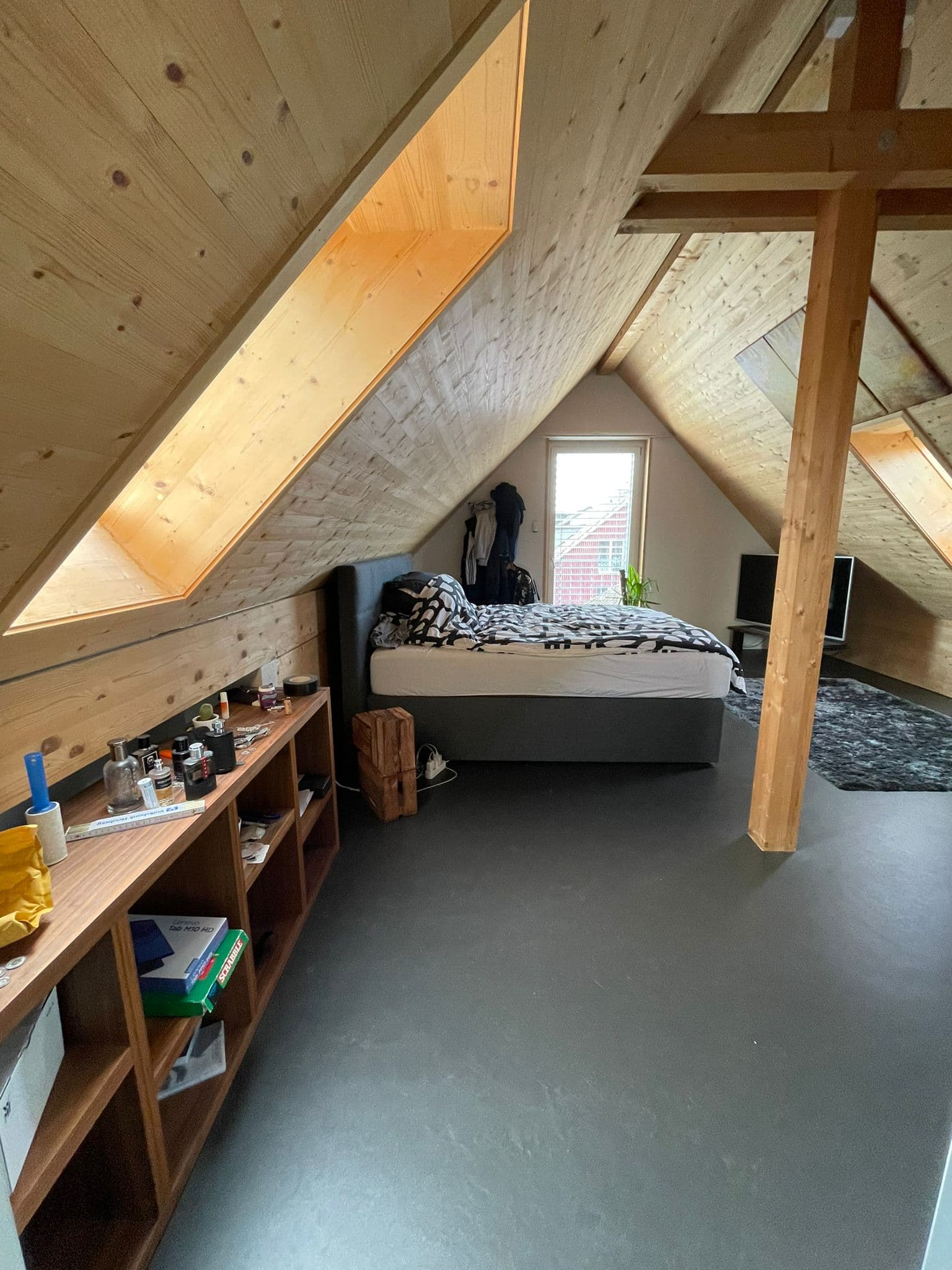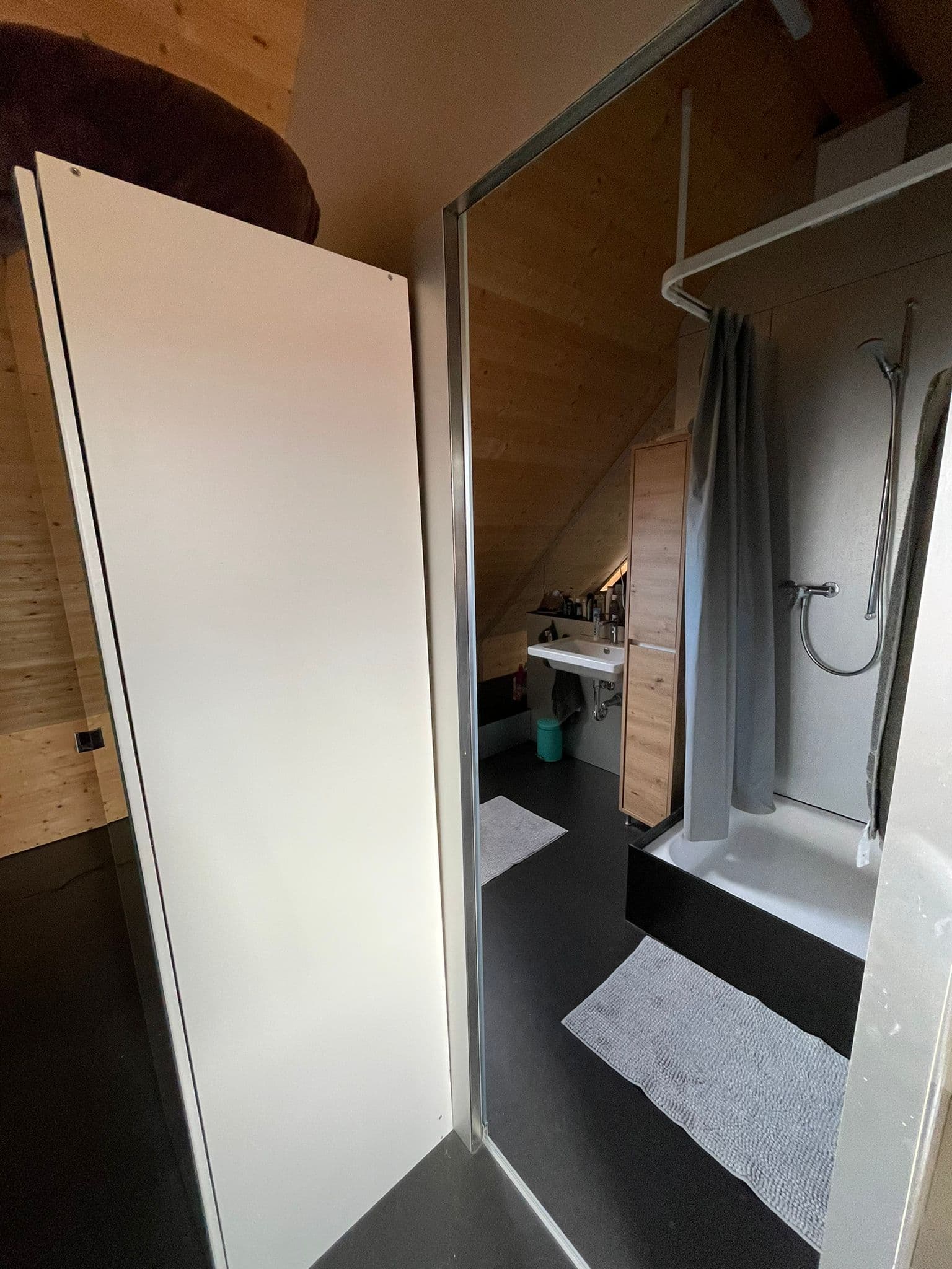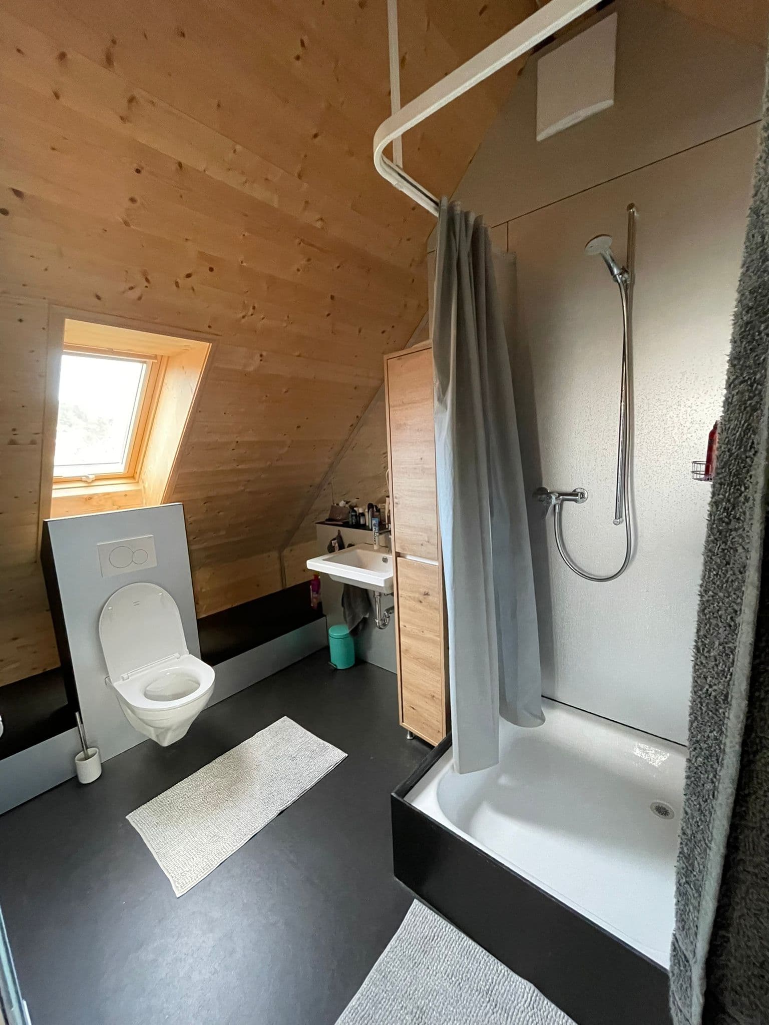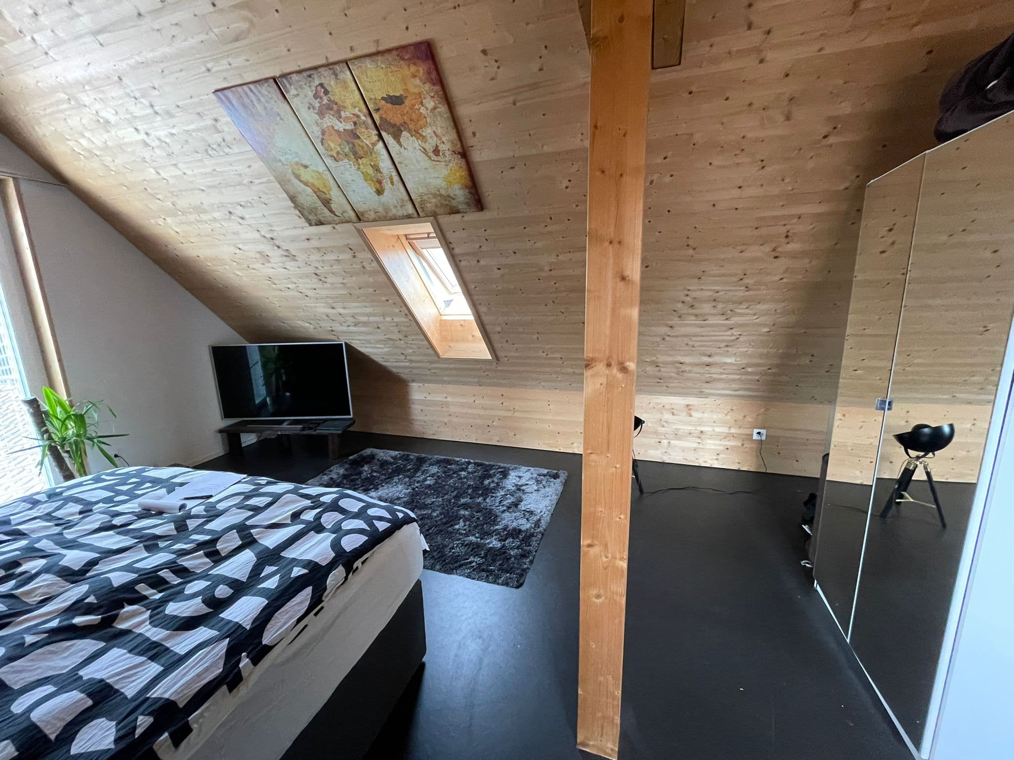 Das ca. 33 m² grosse Zimmer ist im 3.OG. Es hat einen kleinen Vorraum im 2.OG und ein eigenes Bad.