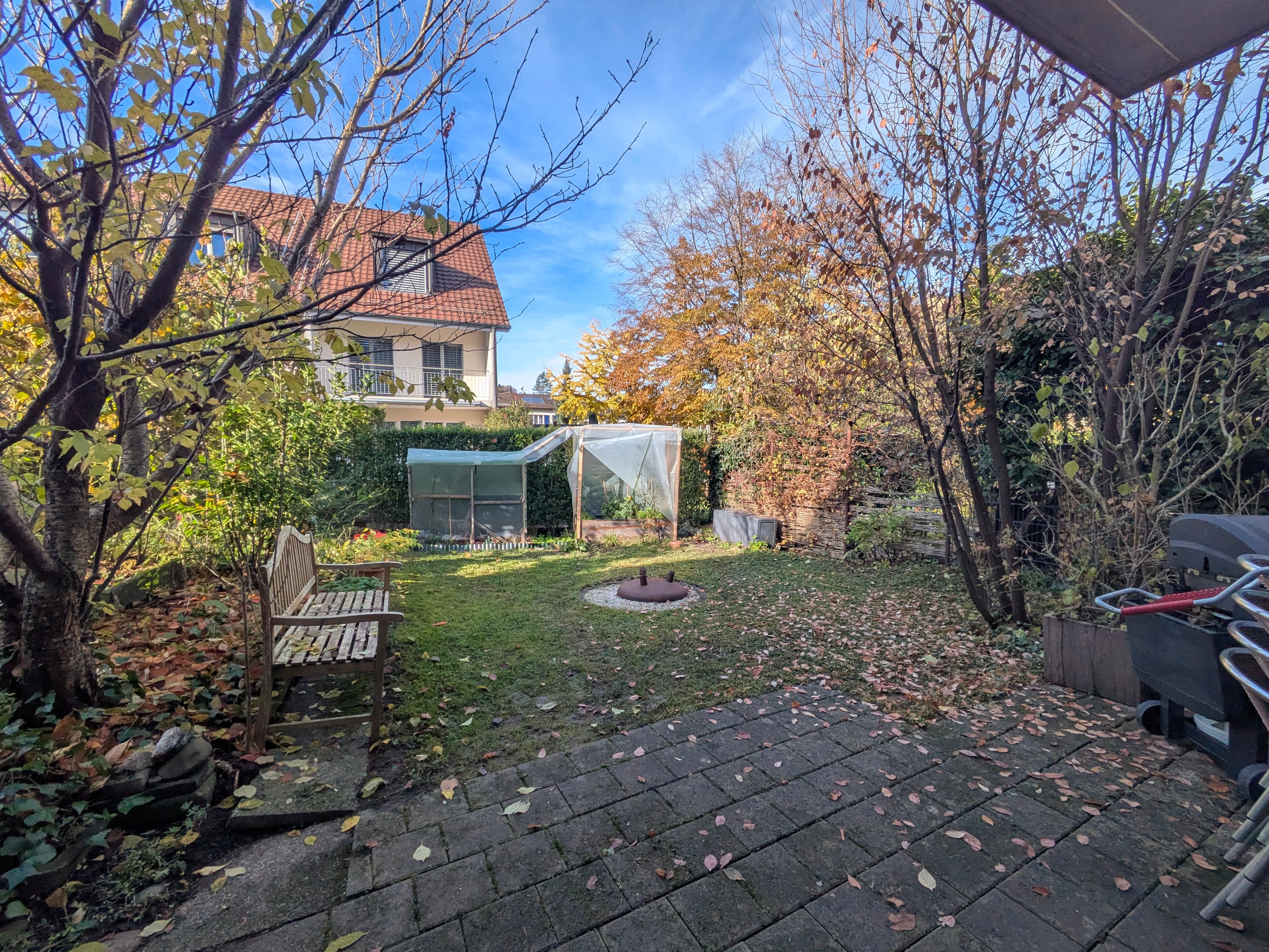 Das Haus bietet einen grosszügigen Wohn- und Essbereich mit Balkonen auf zwei Seiten sowie eine moderne Gemeinschaftsküche mit fünf einzelnen Kühlschränken. Der Garten mit Sitzplatz lädt im Sommer zum Verweilen und Grillen ein. Im Keller gibt es viel Stauraum sowie Möglichkeiten für Hobbys wie Dart oder Fitness. Die Nebenkosten betragen 150 CHF pro Monat und decken Internet, Wasser, Strom und gemeinsam genutzte Haushaltsutensilien ab.