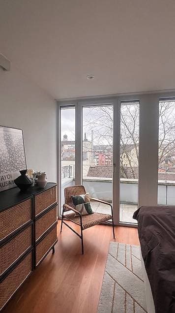 The room is 13 m², fully furnished, and located in a 5-room apartment on the 5th floor (with elevator). The apartment is in a quiet neighborhood, just 5 minutes from Zurich Main Station (HB).