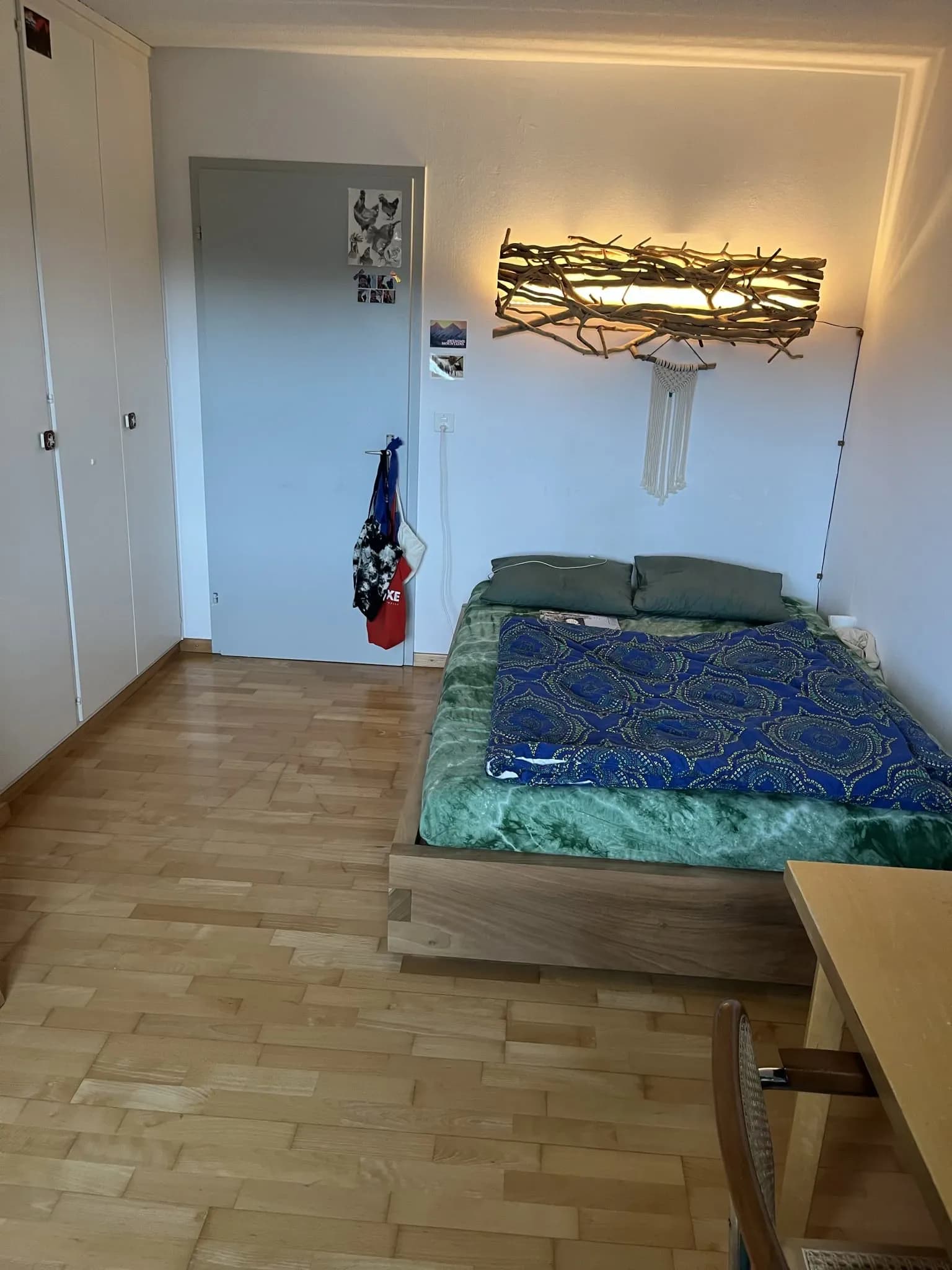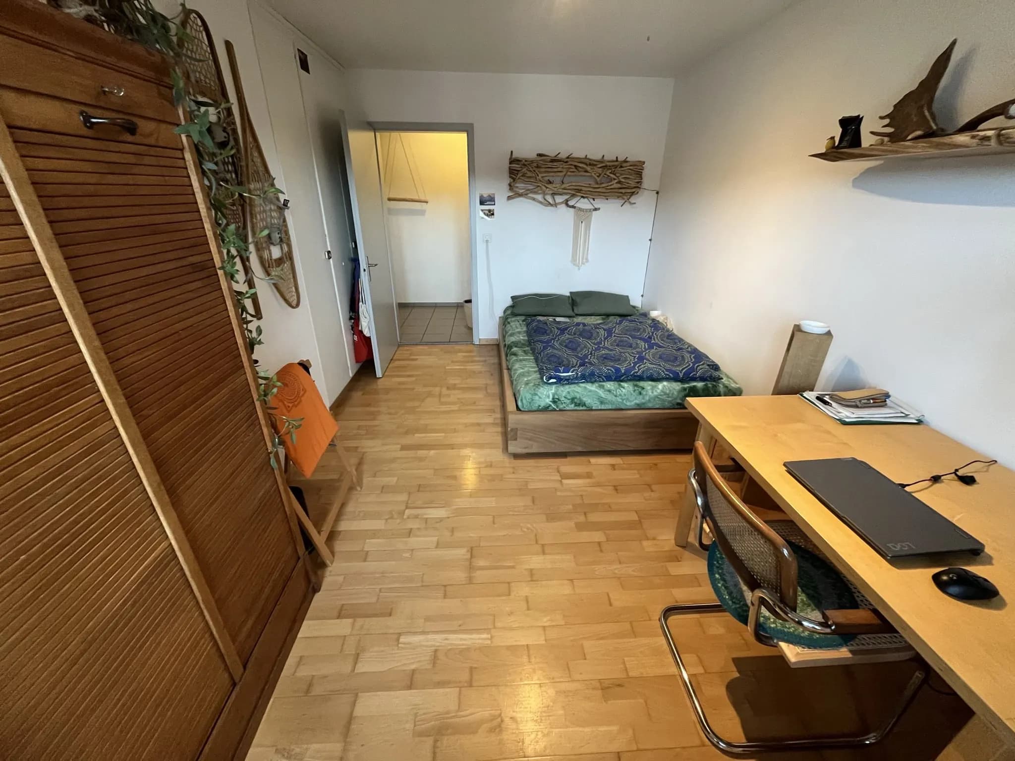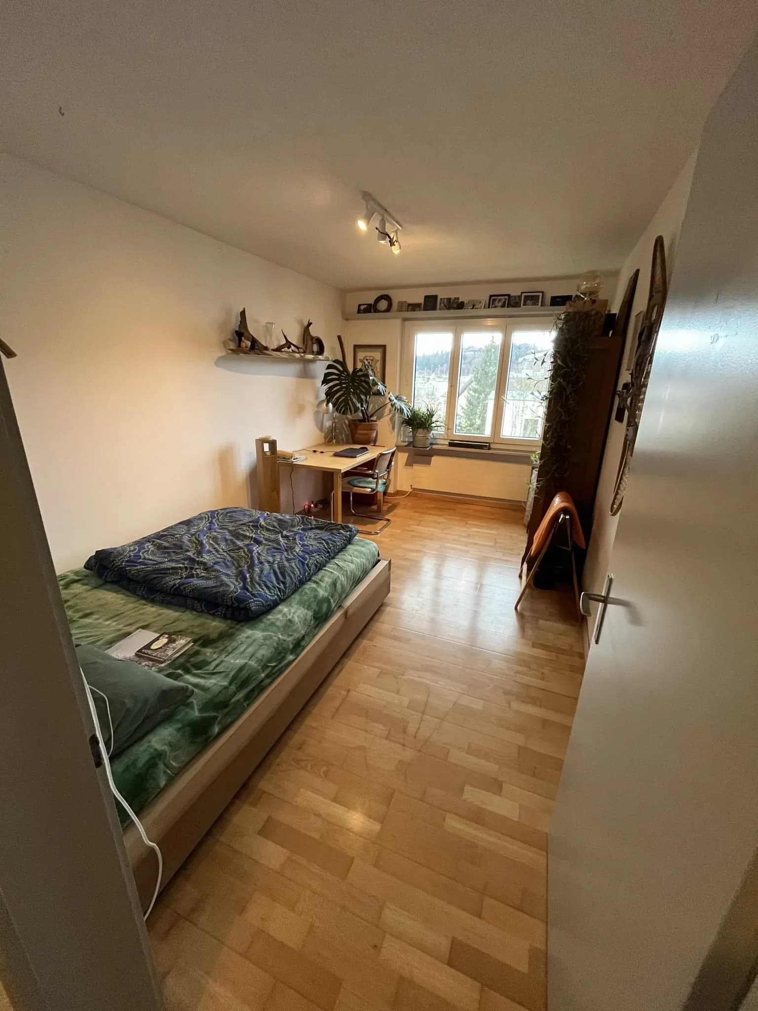 Das Zimmer ist 13.8 m² gross, hell und verfügt über einen geräumigen Einbauschrank.