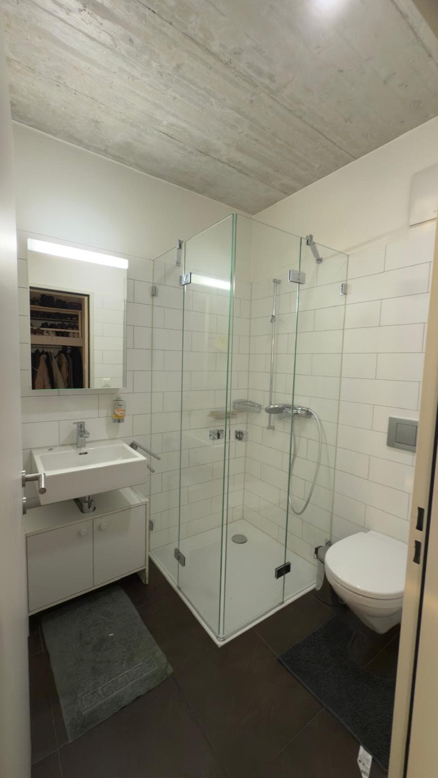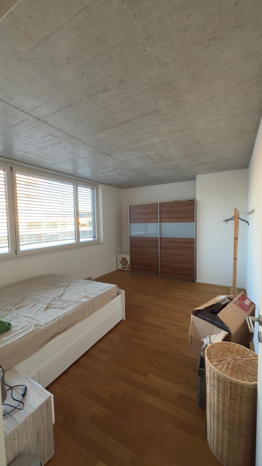 Im Zimmer befinden sich bereits ein Bett und ein Kleiderschrank, die nach Wunsch behalten werden können. Zusätzlich steht dir ein eigenes Badezimmer mit Dusche zur Verfügung, das hauptsächlich von dir genutzt wird.