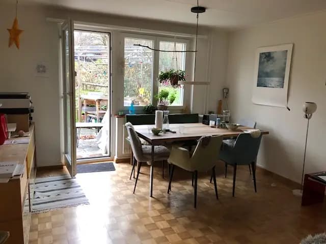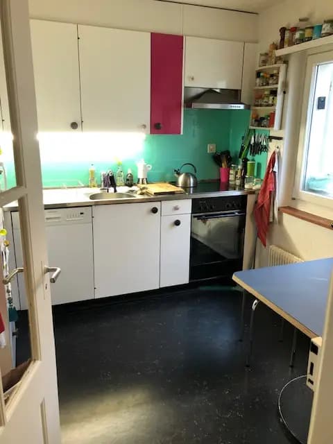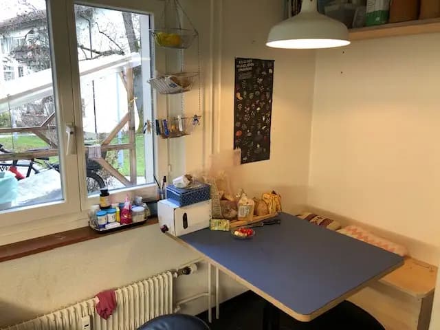 In den anderen 2 Zimmern wohnt Leslie 20ig, sie studiert, und singt viel und ich Esther 58ig berufstätig, spiele Klavier und bewege mich gerne und lese viel. Wir suchen jemand der das Zusammenleben schätzt und gerne auch mal kocht und zusammen mit uns isst, nicht nur reine Zweck-WG, und trotzdem jeder seinen eigenen Space haben kann. Wäre schön von dir zu hören😊