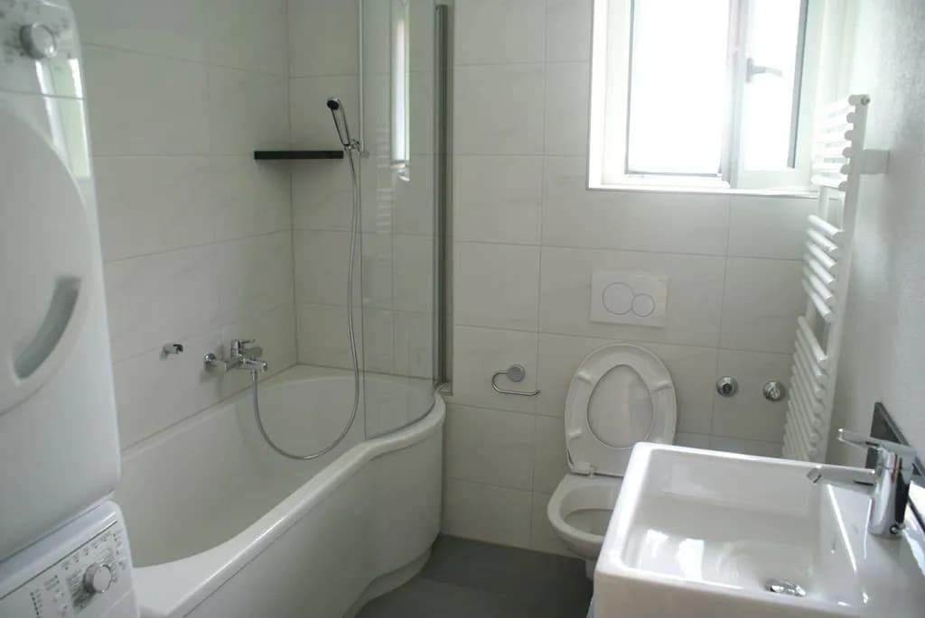 * Badezimmer mit WC, Lavabo, Dusche _und_ Badewanne