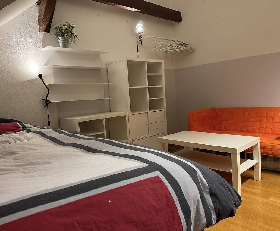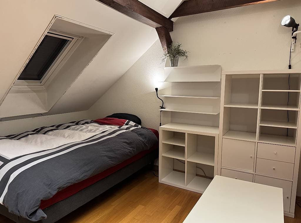Suchen weibliche Mieterin für unser möbliertes Zimmer (14qm) mit eigenem Bad (Dusche) in gemütlicher 4-Zimmer Dach-Wohnung, 6. Etage (Lift).
