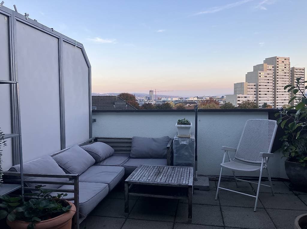 Schöne Terrasse, grosses offenes Wohnzimmer und Wohnküche (Waschmaschine in der Wohnung) zur Mitbenutzung.