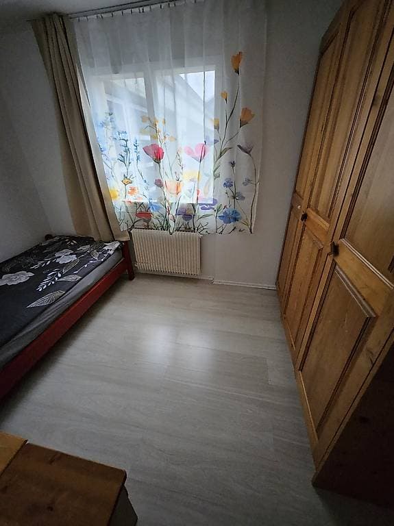 Das Zimmer befindet sich im Erdgeschoss eines Zweifamilienhauses.
